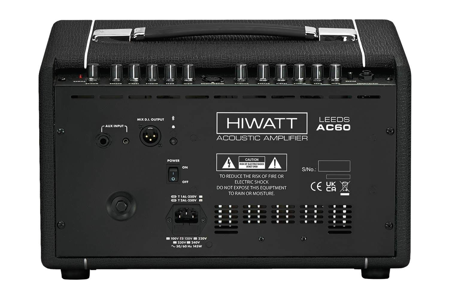 Hiwatt's first dedicated acoustic amp, the Leeds AC 60 packs two channels and 60 watts of trademark Hiwatt headroom into a compact portable format. With an analog preamp paired with chorus and reverb to add extra dimension to your acoustic playing, the balanced XLR input allows you to blend in crisp vocals or to mic up your acoustic guitar with ease. The AC60 will perform at any volume without colouring your tone.