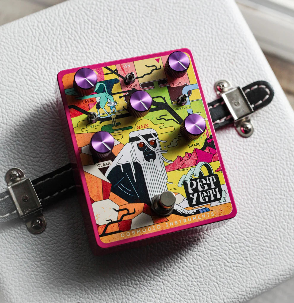 The Pet Yeti analog distortion & fuzz pedal is about harnessing and befriending a monstrous force. It delivers extreme, unbridled and sometimes unusual distortion along with the means to scale and sculpt that energy to suit your music and performance. Its gain range, selectable voicing patterns, and analog bit-crushing can move it from clean boost, through crunch, overdrive and fuzz to glitchy madness. Its parallel clean path and tunable wide-spectrum response make it excel at processing not only guitar, but also bass, drum-machines, synthesizers… anything really. It’s omnivorous!