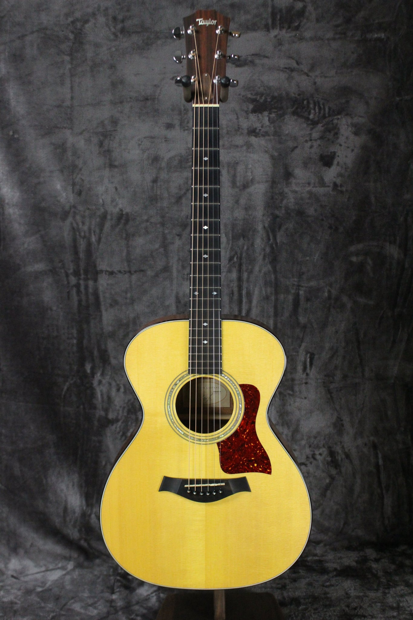 Hardware: Grover Rotomatic tuning keys, Ebony bridge & end pins with compensated saddle, tortoise pickguard & abalone rosette, bone nut.