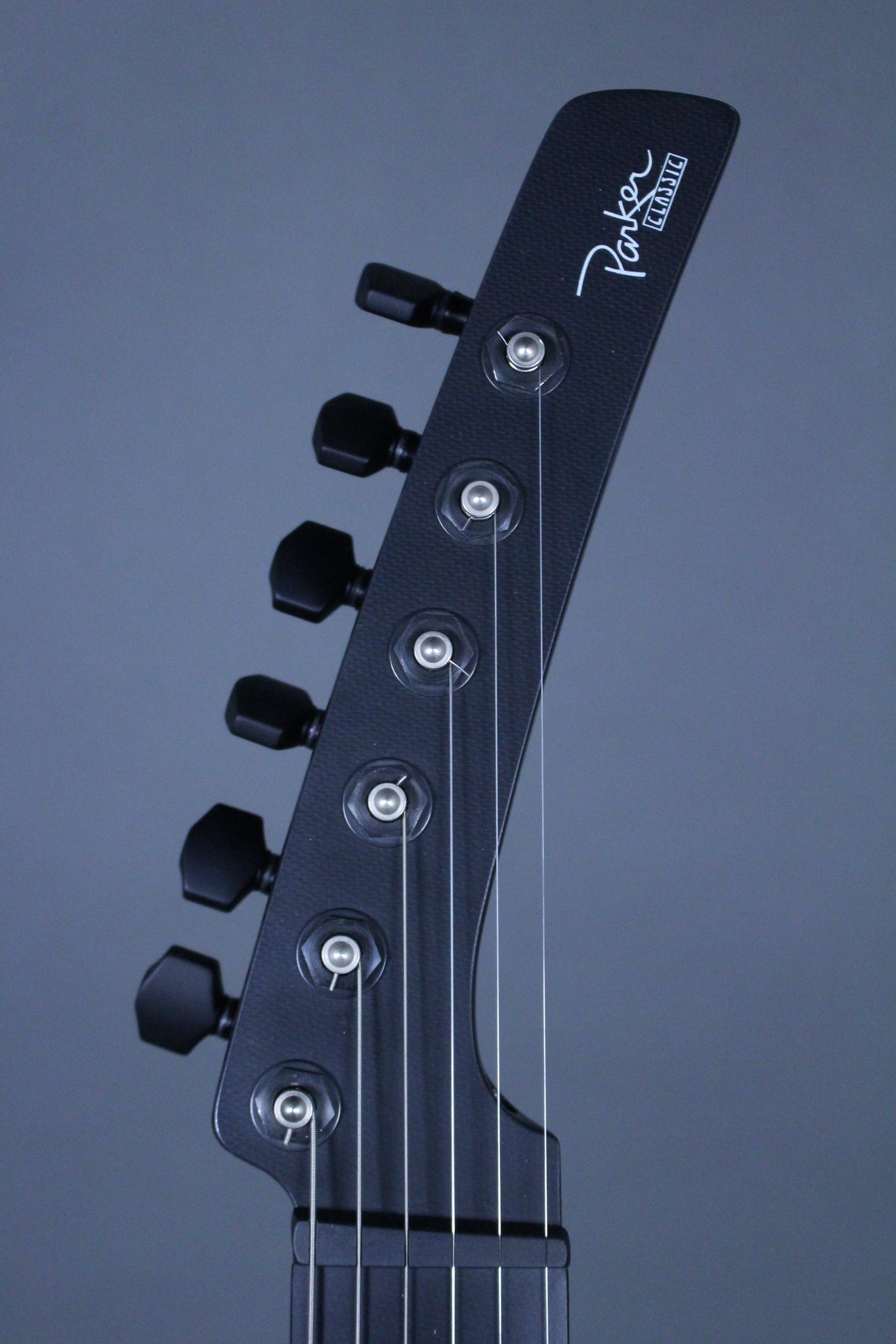Neck: Basswood neck with a carbon fiber fingerboard, 10-13” radius, 25.5” scale length, 1 11/16” nut width, 24 stainless steel frets, no inlays.