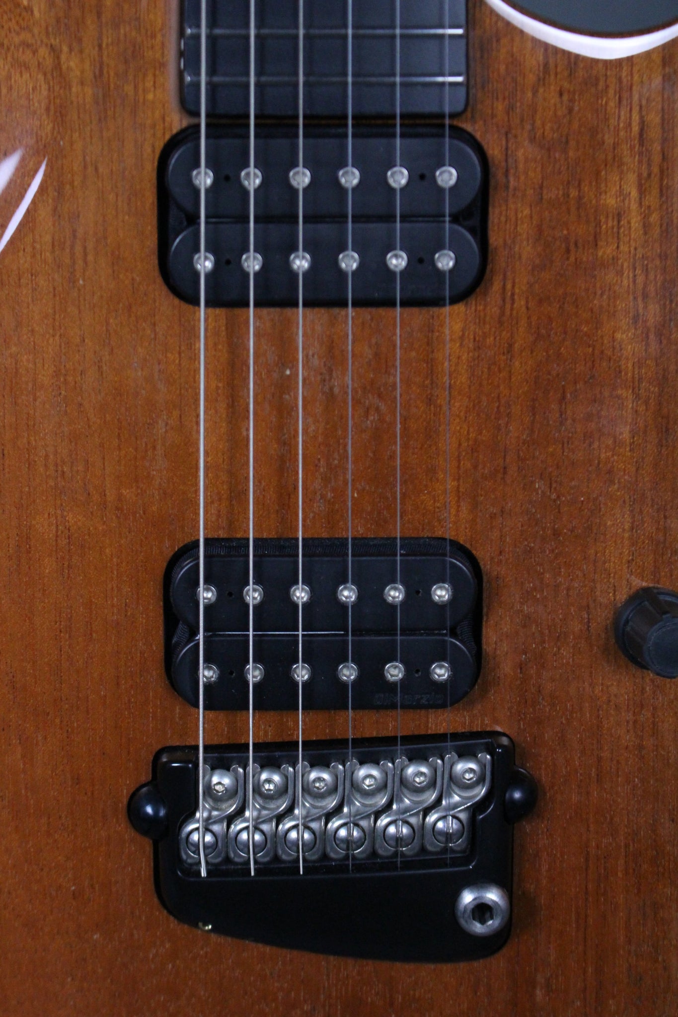 Pickups/Hardware: Factory Dimarzio pickups with Fishman piezo pickup, Black Sperzel locking tuning keys, tremolo bridge, Master Volume, Magnetic Pickup Volume, Piezo Volume, 3-way magnetic toggle, 3-way mag/piezo selector, graph-tech nut.