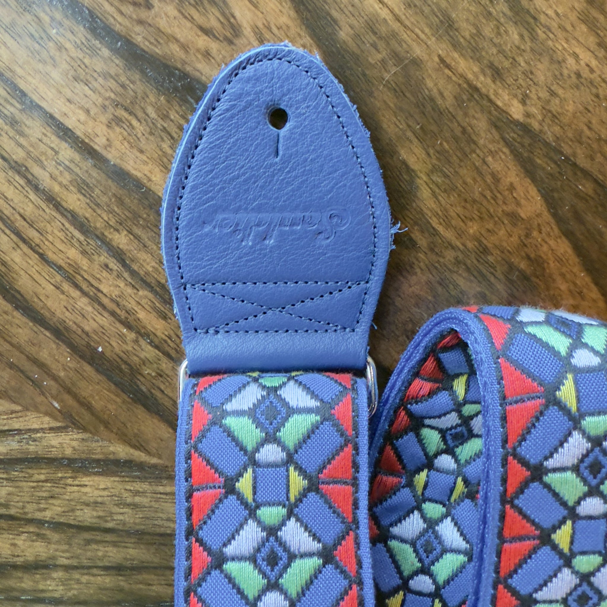 Souldier Guitar Strap Stained Glass Royal Red/Blue with Blue Leather Ends *Free Shipping in the USA*