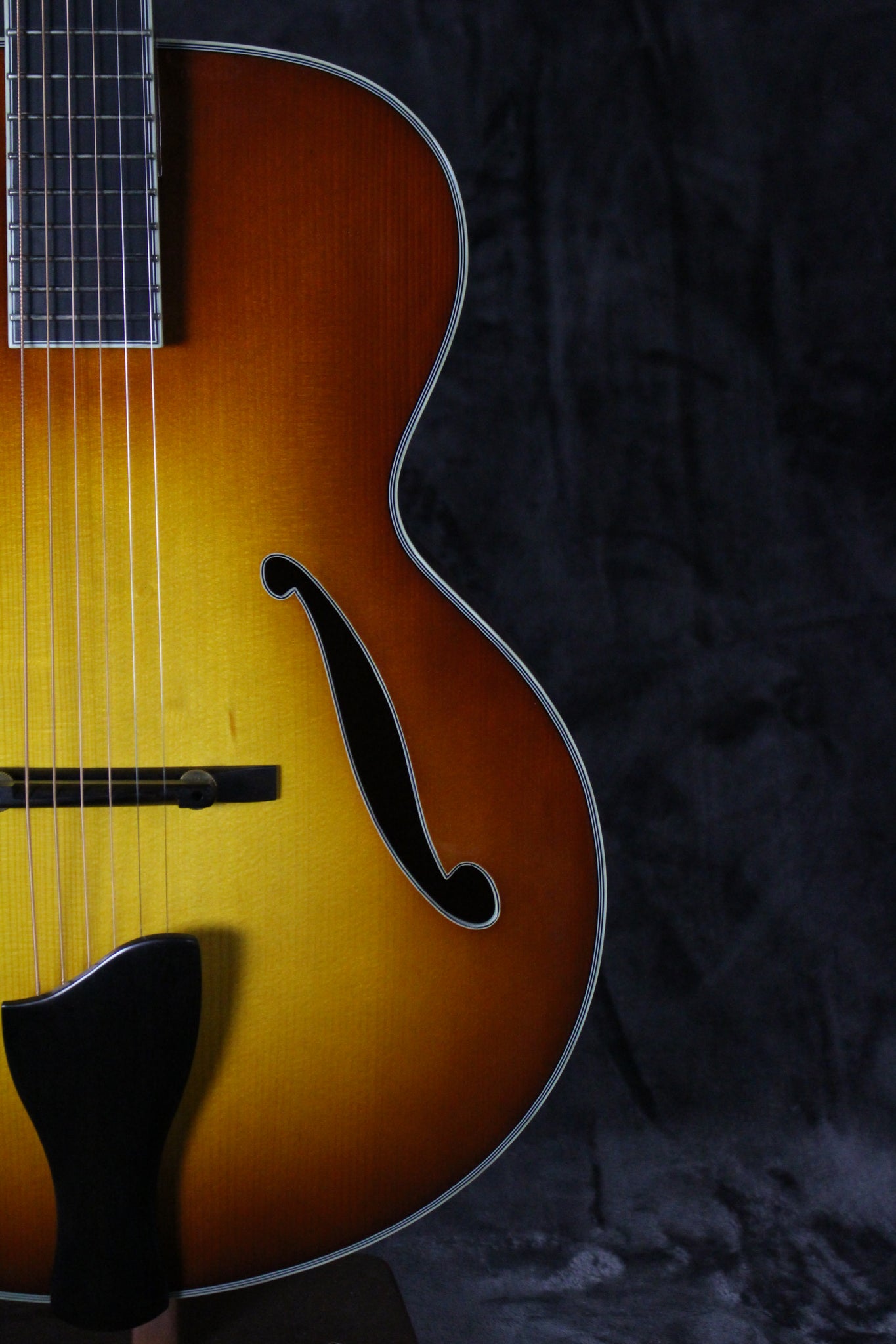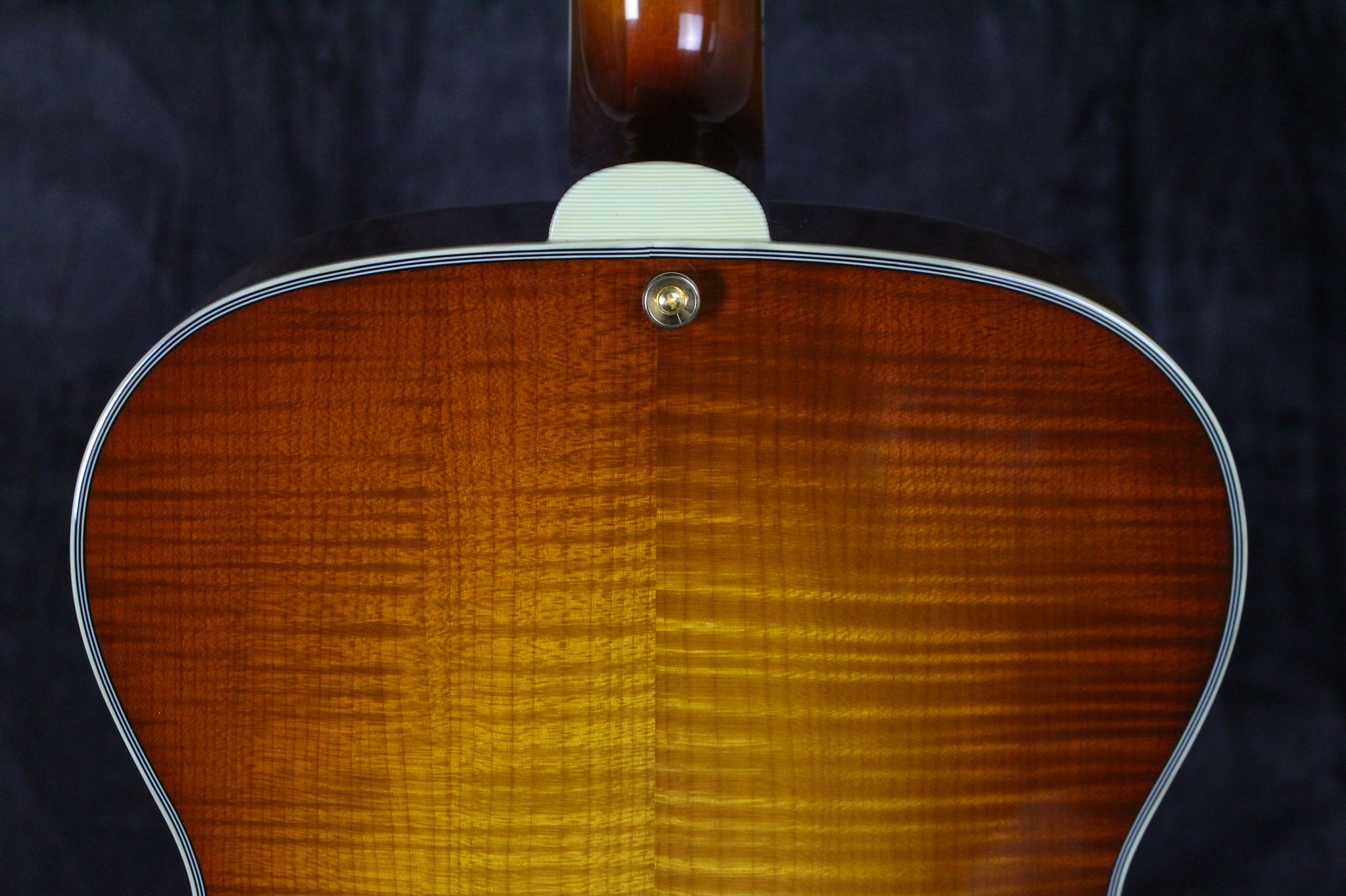 The solid spruce top and solid handcarved maple back and sides contribute to the guitar's exceptional resonance and projection, providing a well-balanced, full-bodied sound that will captivate both the player and the audience.