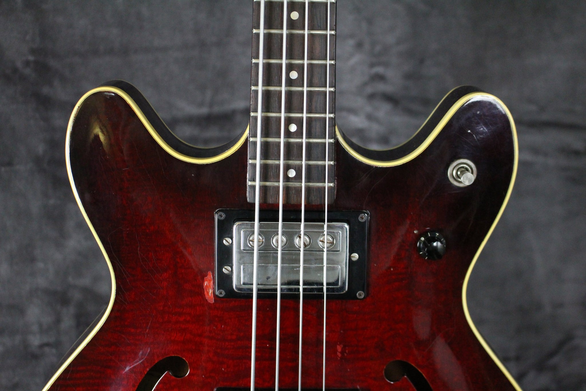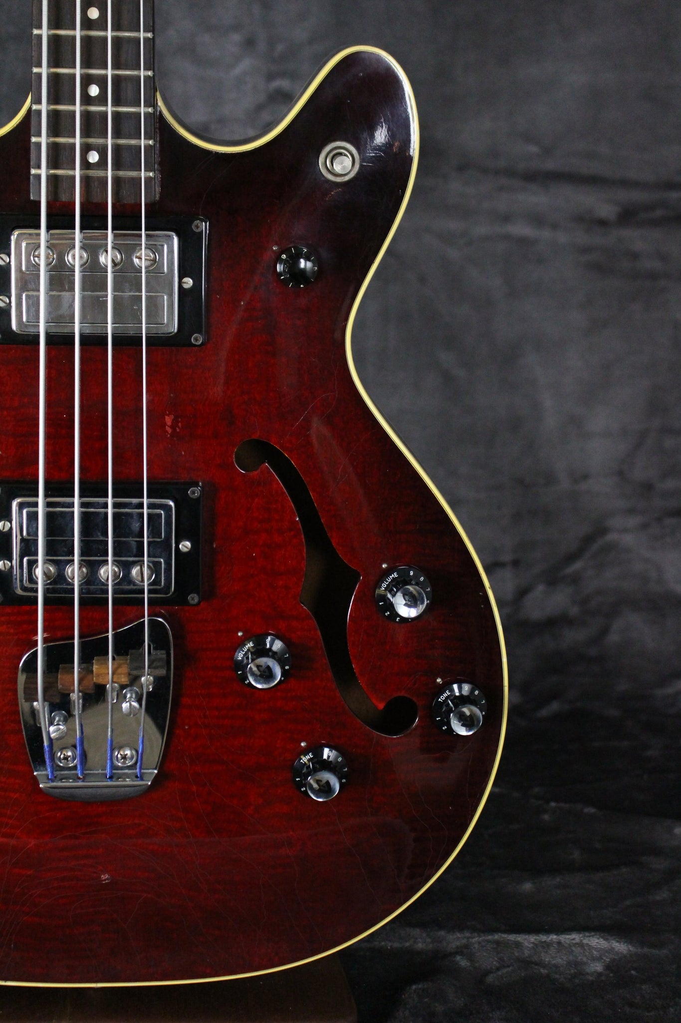 Cosmetics: This bass is in good condition for its age. It has light finish checking on the top and back of the body. There is some picking wear near the neck pickup and in between the two pickups. The back of the neck is clean aside from a few dings, and the frets show minimal wear. Overall, this guitar plays very well and sounds fantastic.