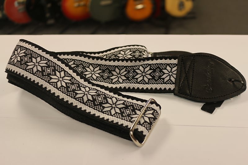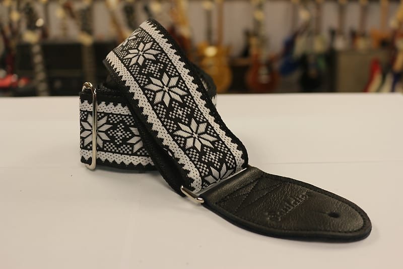 Souldier Strap Poinsettia Black on White w/ Black Leather Ends *Free Shipping in the USA*