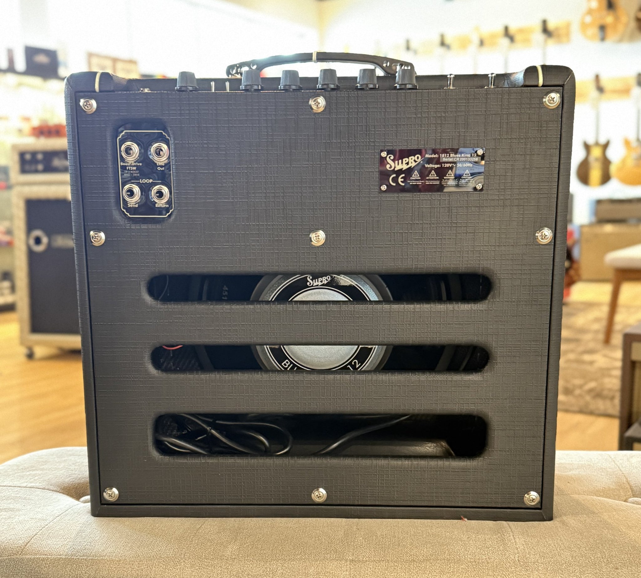 This used Supro Blues King 12 is in great condition, it even has the original hang tags still on it. These modern Supros are great for at home practice and quieter gigs. On the rear of the amp, you'll find a 1/4" line out, an input for a footswitch, and effects loop. Pretty nifty. The original box for this amp is also included. Come on by the shop and try it out.