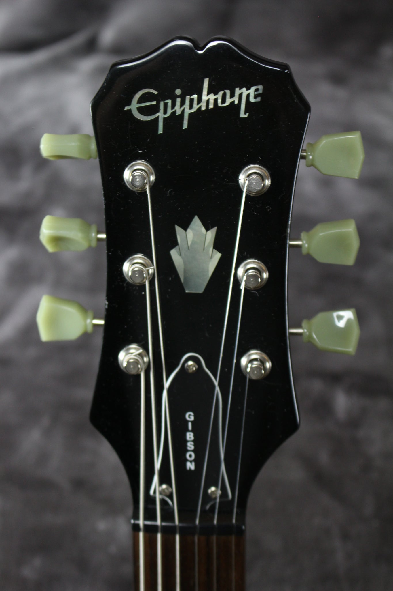 Pickups/Hardware: Humbucking pickups, Epiphone tuning keys, stopbar tailpiece and tune-o-matic bridge, black witch hat knobs.