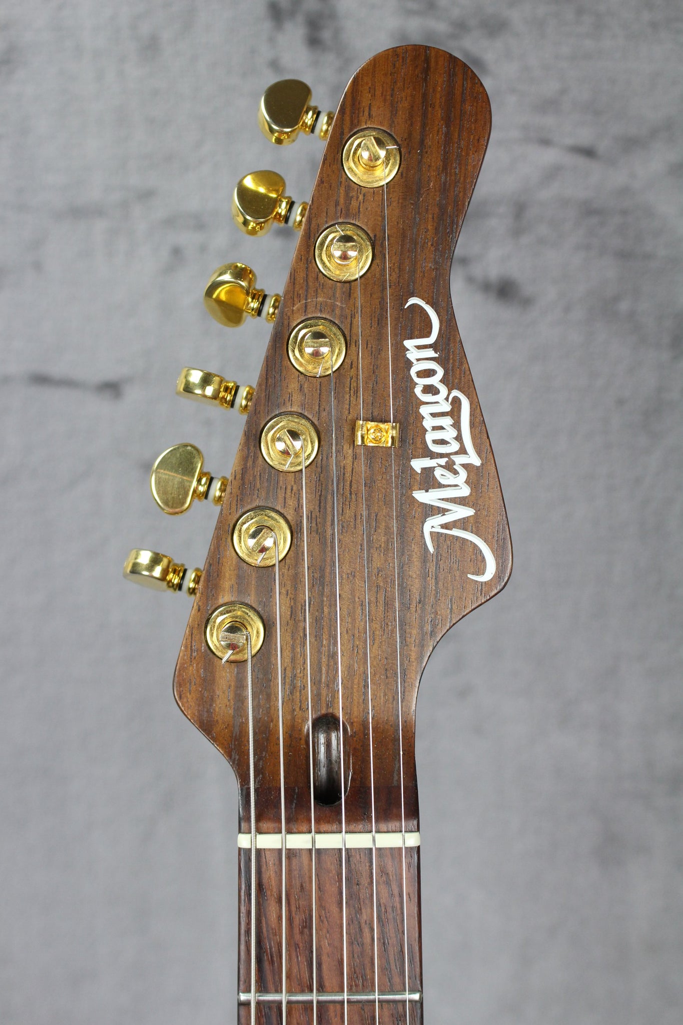 Summary: This is a custom-built guitar by the late Master Luthier Gerard Melancon himself. The serial number is #803. At the time this guitar was built, Gerard was really hitting his stride. These instruments were built to stay in tune. It has beautiful, quilted maple top and an East Indian rosewood neck that plays great up and down the rosewood fingerboard.
