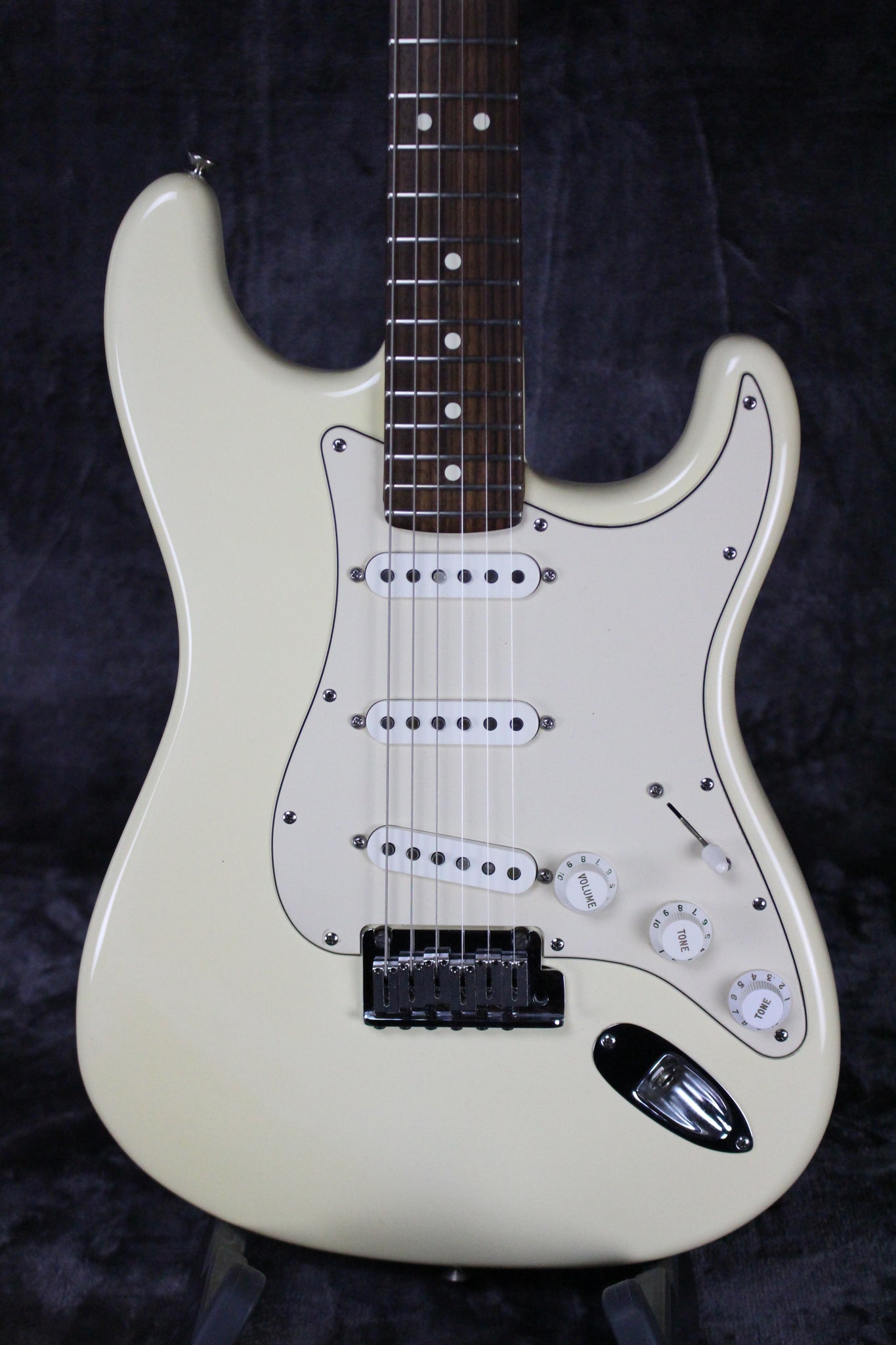 Summary: This 2003 Fender Jeff Beck Signature Stratocaster features an alder body, soft C-shaped maple neck with contoured heel for easier access to high registers, five-way switching. Over, under, sideways, down, this guitar rocks.