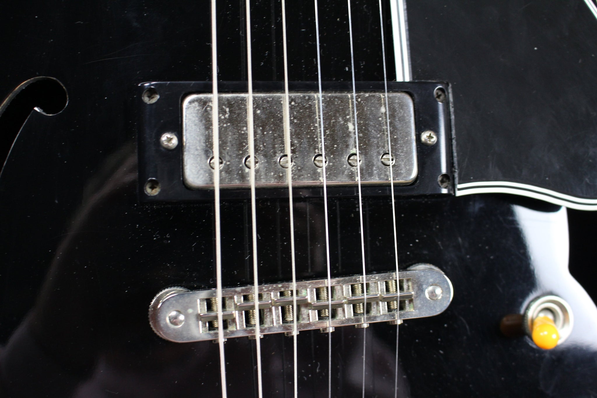 Pickups/Hardware: Gibson Mini Humbucker pickups, Kluson tuners with plastic Keystone tuning keys, ABR bridge, trapeze tailpiece, black speed knobs, bone nut.