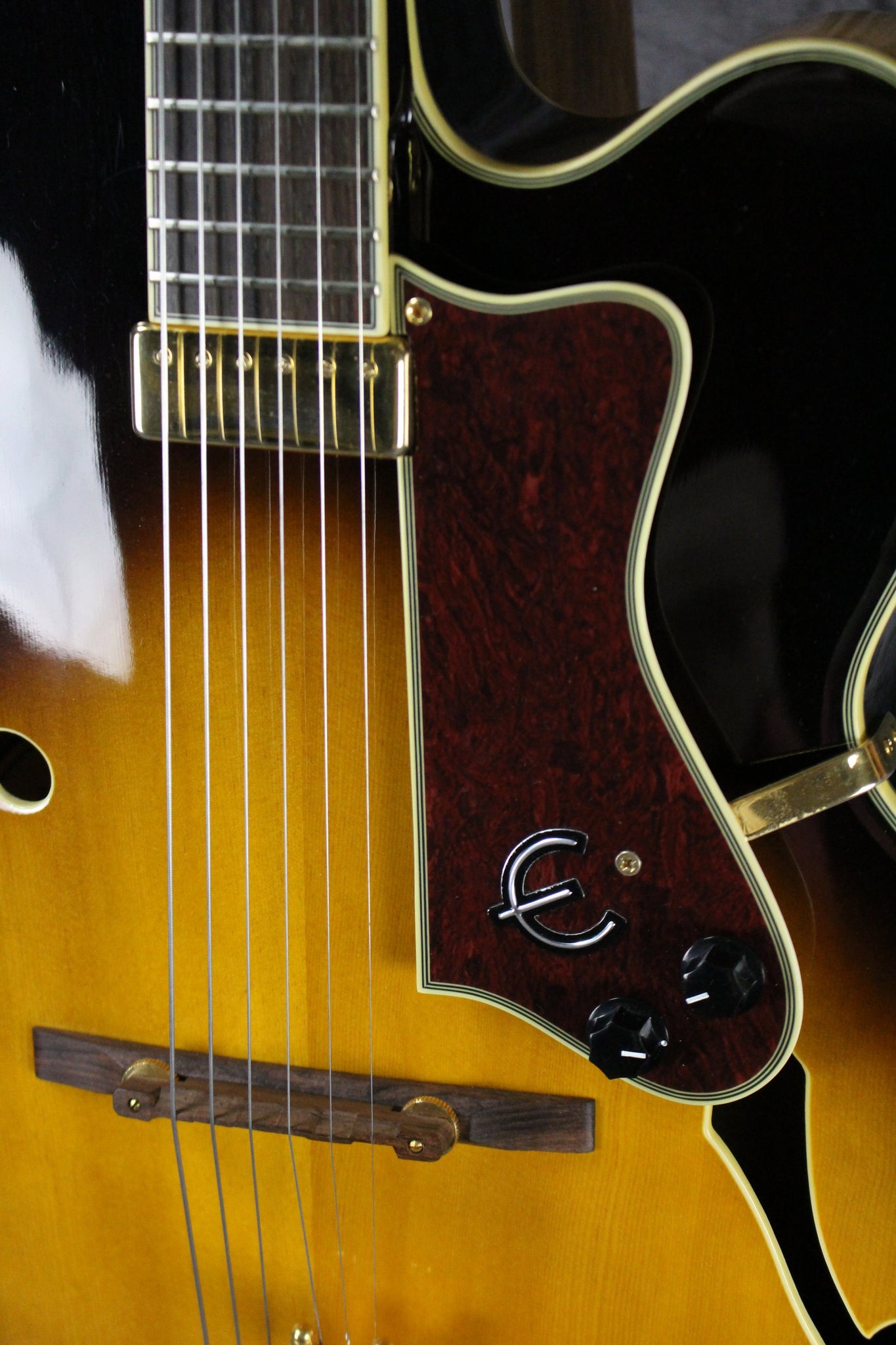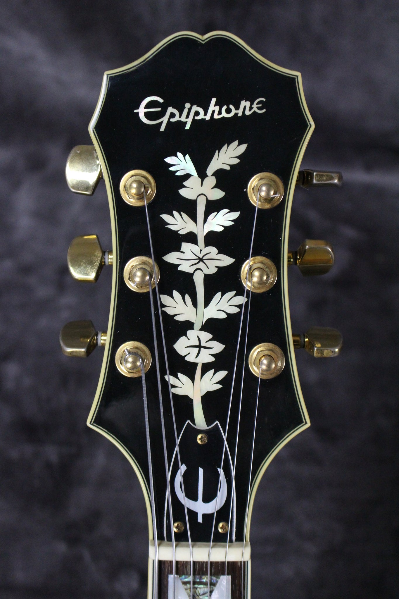 Pickups/Hardware: Epiphone floating mini-humbucking pickups, gold tuning keys, wooden bridge frequensator tailpiece, black knob, bone nut.
