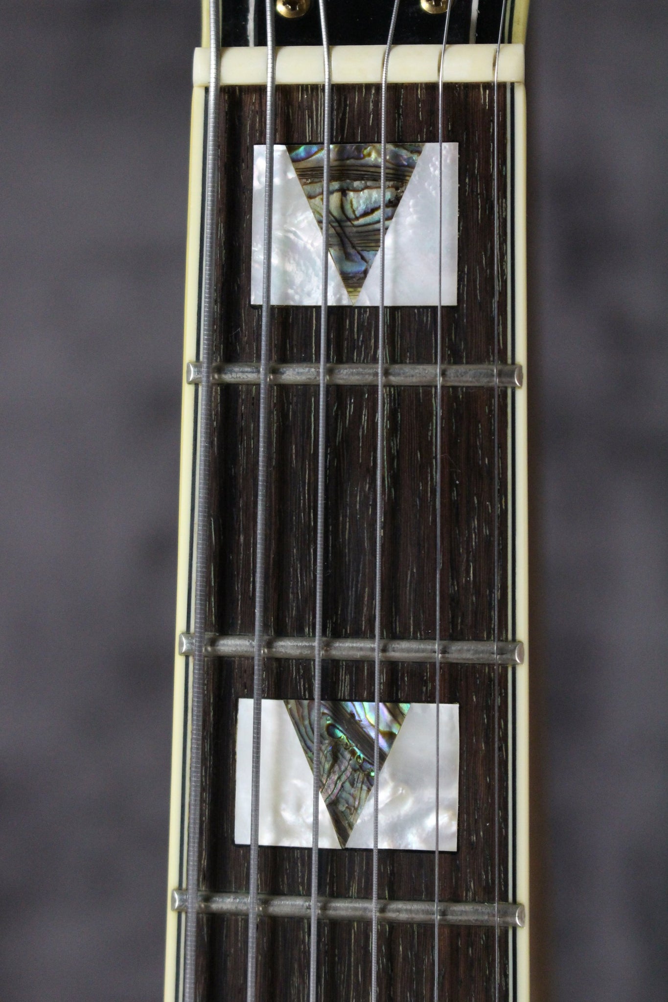 Neck: Maple with a Rosewood fingerboard, 25.5” scale length, 1.68” nut width, 22 frets, pearl V-block inlays.