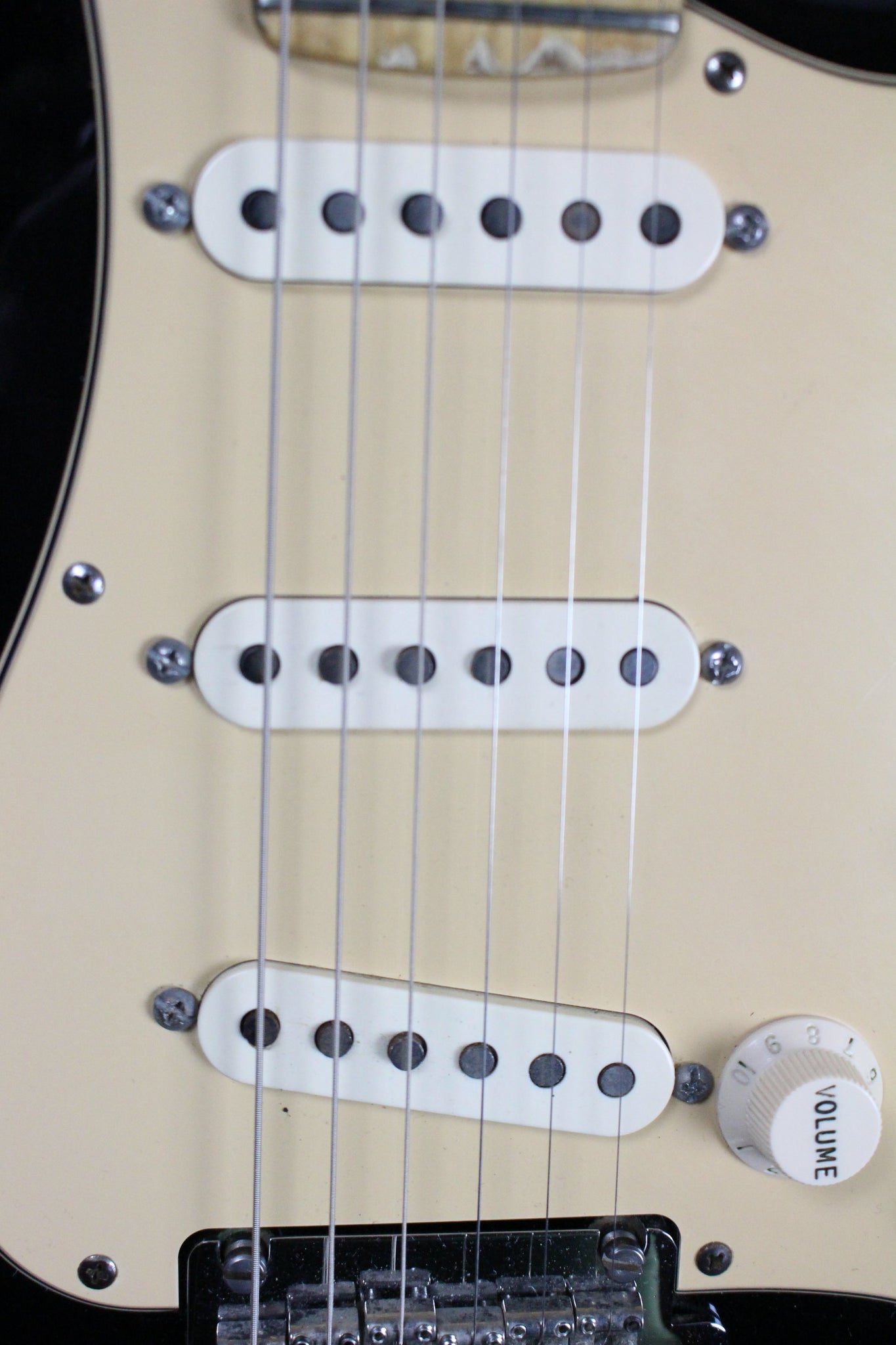 Pickups/Hardware: Three American single coil pickups, Schaller tuning keys, bone nut, Callaham saddles, master volume/2x tone controls/5-way pickup selector, cream 3-ply pickguard.