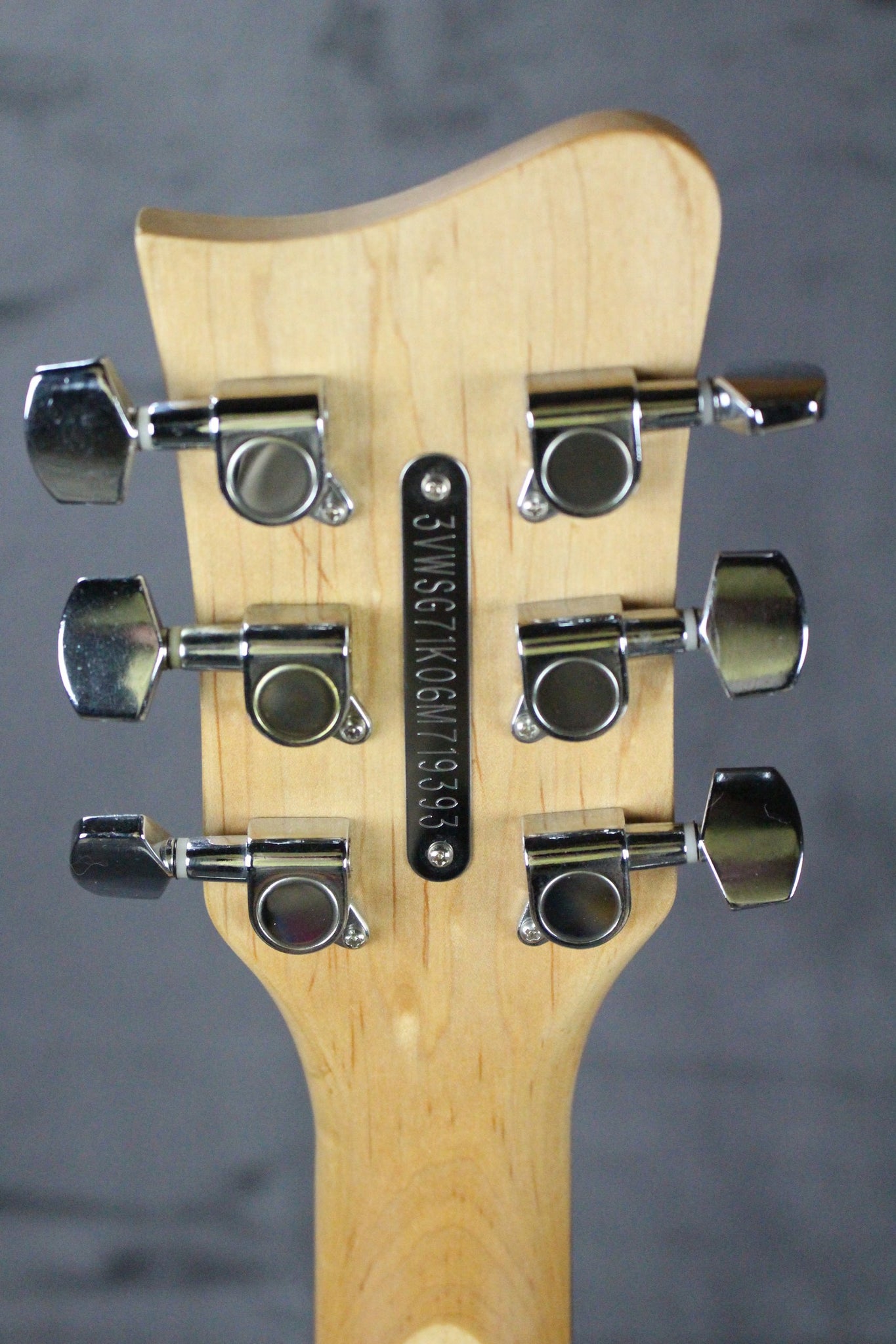 Pickups/Hardware: Two humbucking pickups, chrome hardware, 3-way pickup selector, two volume knobs/one tone knob, three per side tuning keys, car VIN number plate is on the back of the headstock.