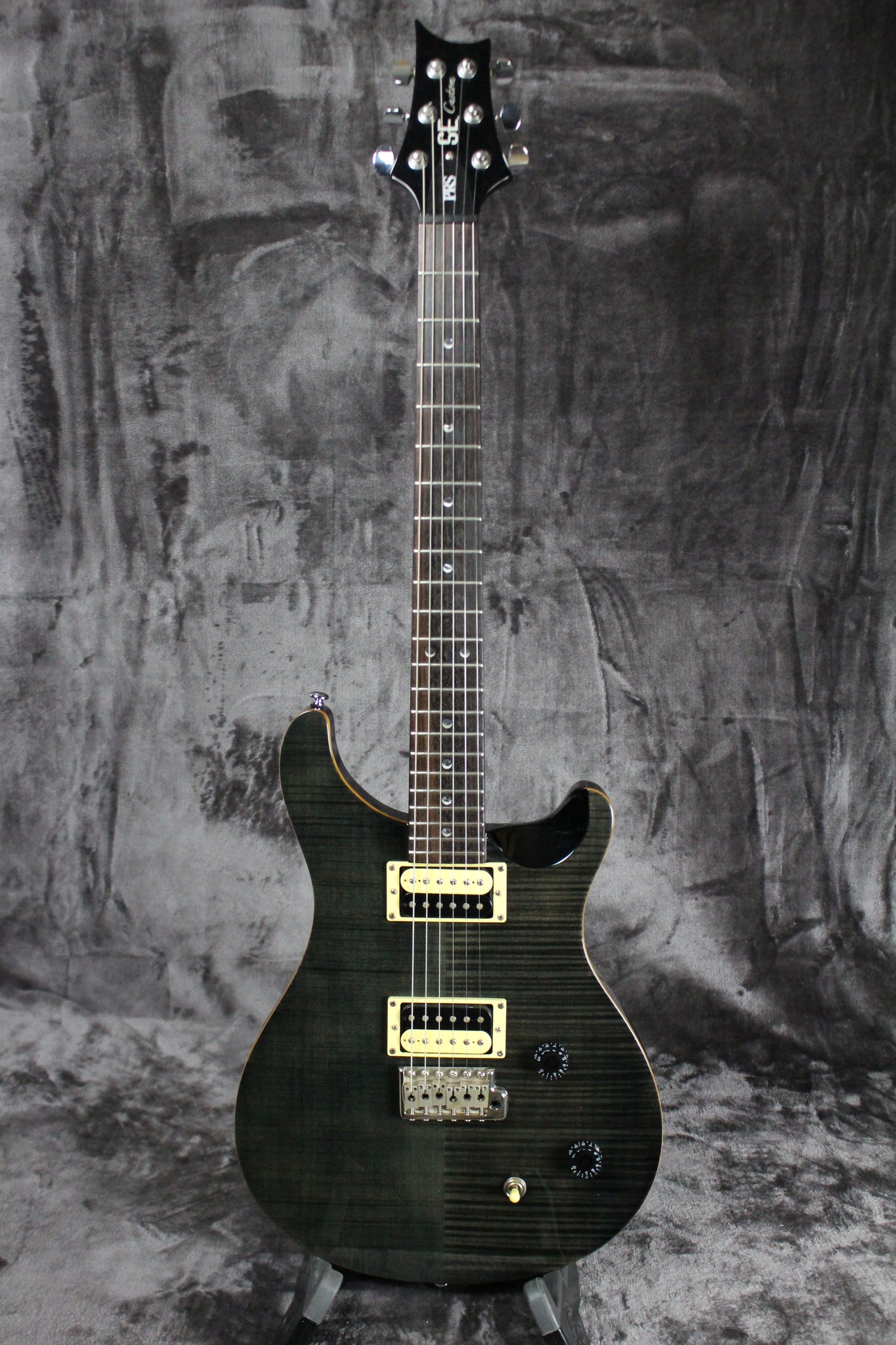 Body: Mahogany with a maple top with flame maple veneer in Grey Black finish.