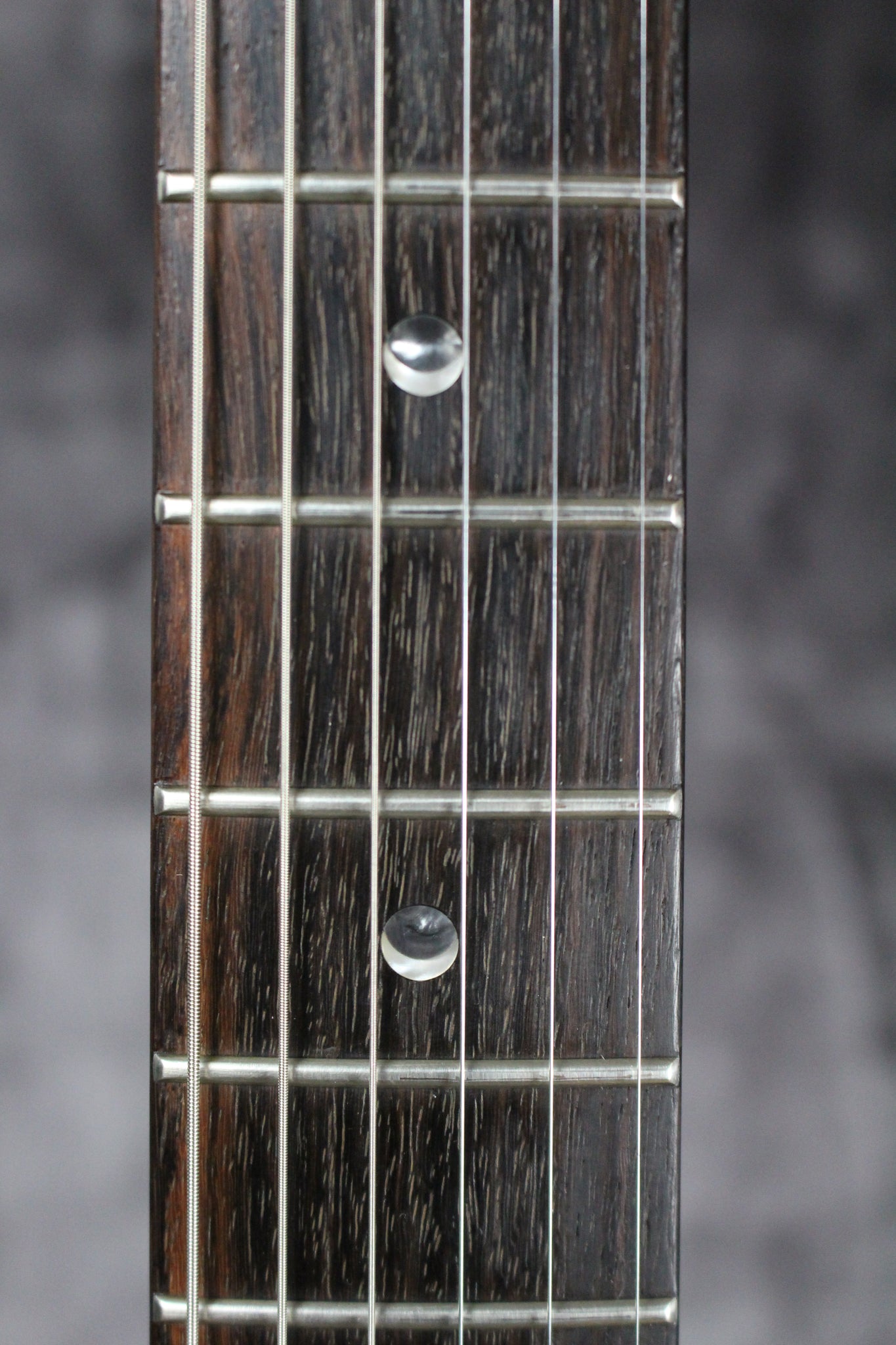Neck: Mahogany with a Rosewood fingerboard, 25” scale length, 1.68” nut width, 22 frets, Pearloid crescent moons inlays.