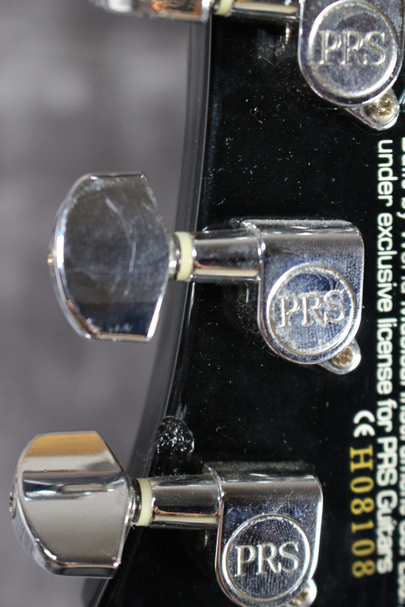 Pickups/Hardware: PRS Zebra humbuckers pickups, PRS tuning keys, adjustable floating tremolo bridge, black speed knobs, Micarta nut.