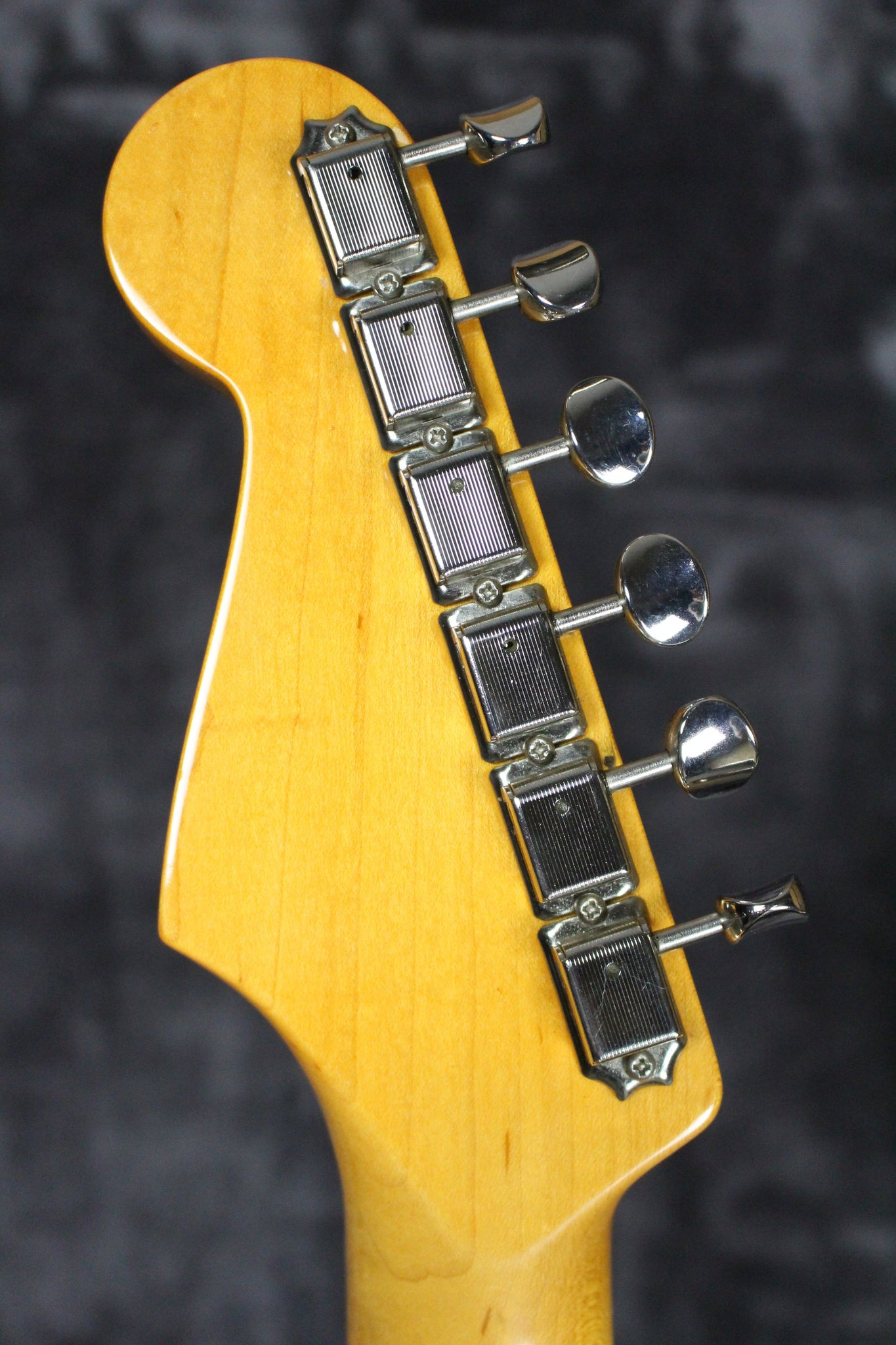 Pickups/Hardware: Three American Vintage single-coil pickups, vintage style tuning keys, single-ply pickguard, 6-Saddle American Vintage Synchronized Tremolo system, 5-way switch, master volume/2x tone controls, synthetic bone nut, aged white plastics.