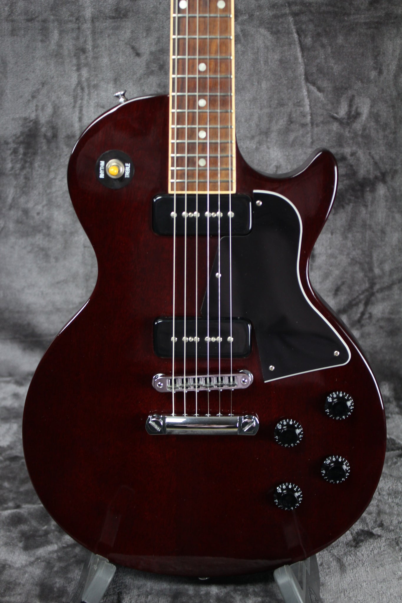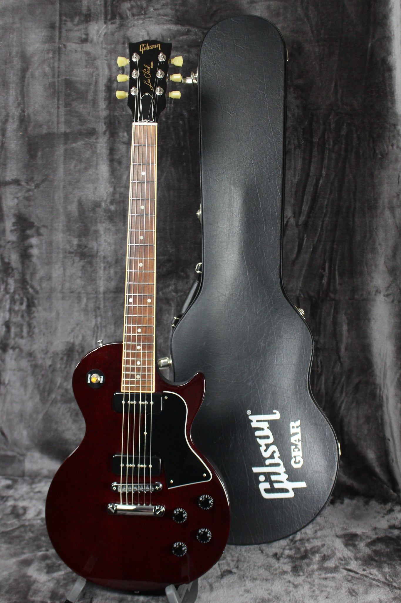 Pickups/Hardware: Gibson P-90 single coils pickups, Kluson Deluxe tuning keys, tune-o-matic bridge, stop bar tailpiece, black speed knobs, bone nut.