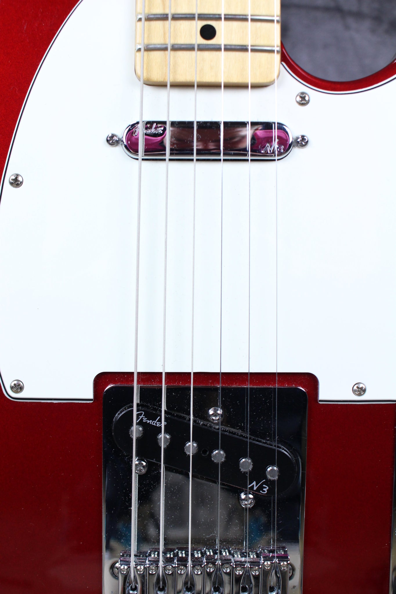 Summary: The Standard Telecaster is about as simple as a guitar can get, and for many players that is the beauty of it. Its single-cut solid-body design was revolutionary in 1950. Like the rest of the Standard Telecaster, the controls are simple and classic. A three-way selector switch controls the pickups, along with one tone knob and one volume knob. The bridge pickup is thin and twangy for that vintage rock sound. The neck pickup is more guttural and reeks of country vibe. This particular guitar has been modded with N3 Noiseless pickups for an even cleaner sound.
