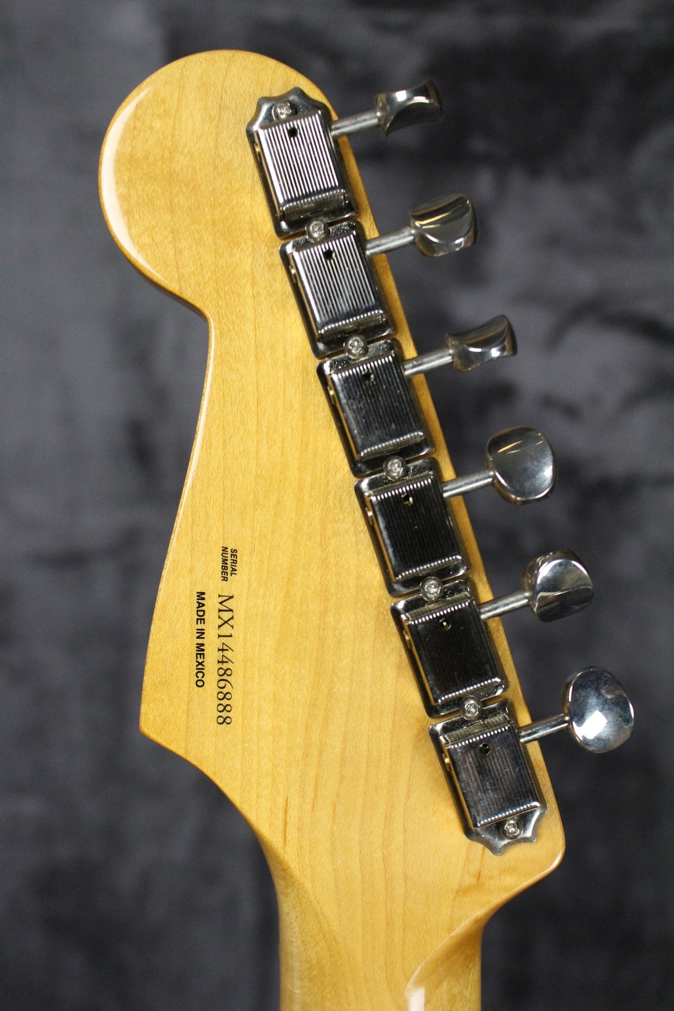 Pickups/Hardware: Three Vintage Style single coil Strat pickups, vintage style tuning keys, synthetic bone nut, white single-ply pickguard, master volume/2x tone controls/5-way pickup selector.