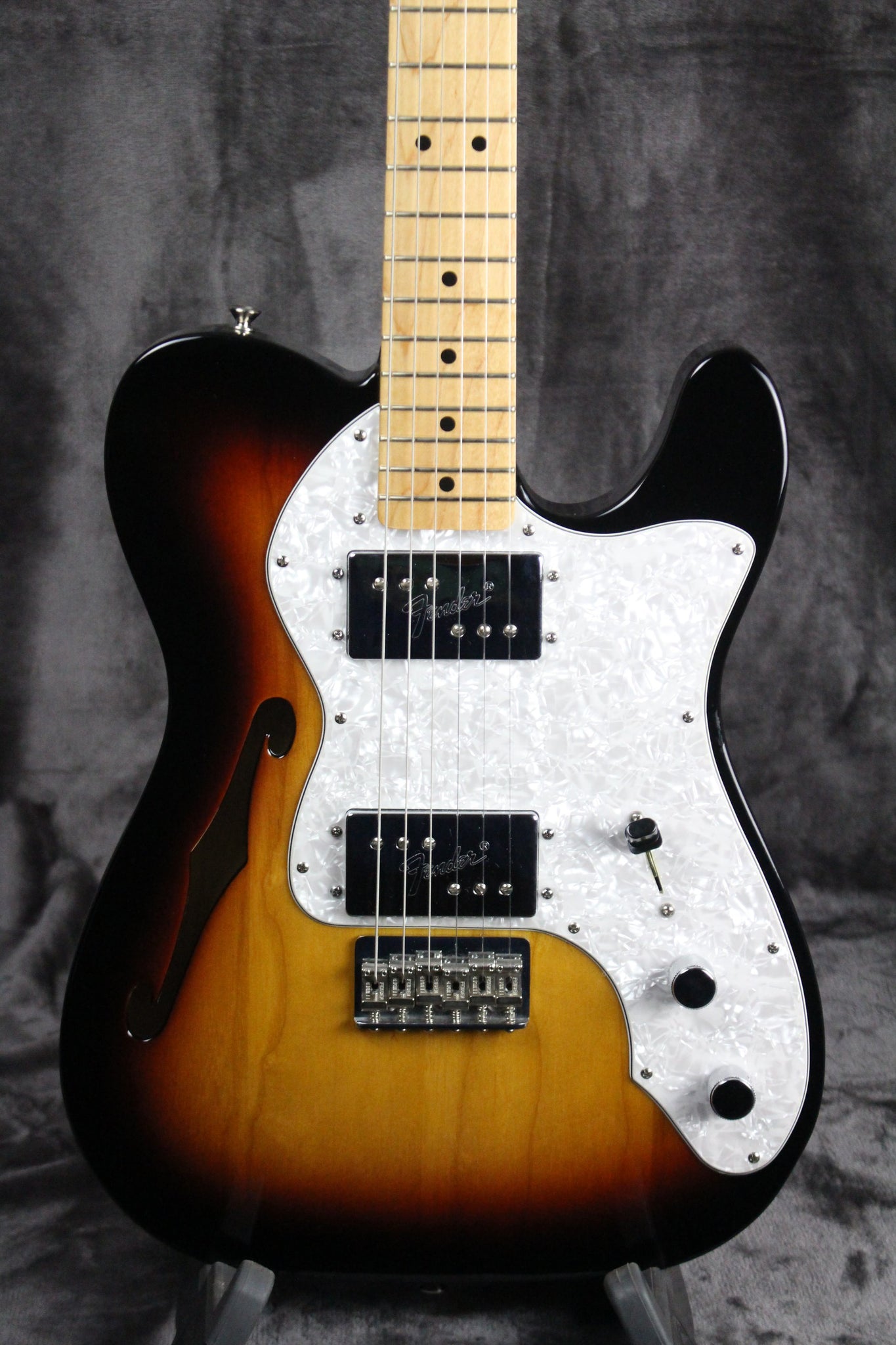 Summary: 1972 was a magical year for the Telecaster. With several new designs, the Telecaster was available with more options than ever before. The '72 Tele Thinline features a warmer and rounder, semi-hollow body, "U" shape maple neck, bullet truss rod, '70s vintage hardtail strings-through Strat bridge, three-bolt neckplate, and two Fender "Wide Range" humbucking pickups.