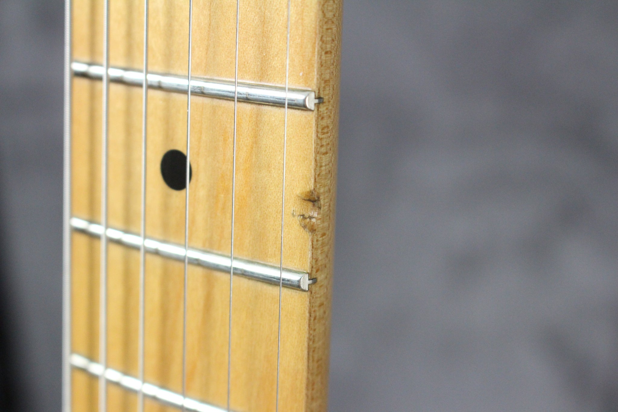 Cosmetics: This guitar has light surface scratches throughout. It has a few deeper chips in the finish that go down to the wood. There is dent in the edge of the fingerboard on the 7th fret (See Photos Please). The back of the neck has a few very small indentations. Overall, this guitar has some cosmetic issues, but it plays and sounds fantastic.