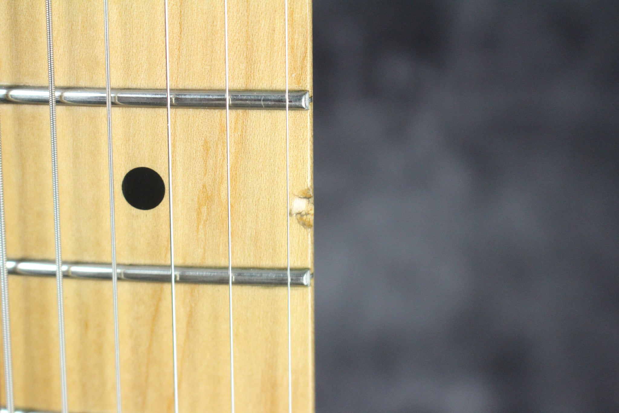 Neck: Maple with a maple fingerboard, 21 frets, 25.5” scale length, 1.641” nut width, black dot inlays.