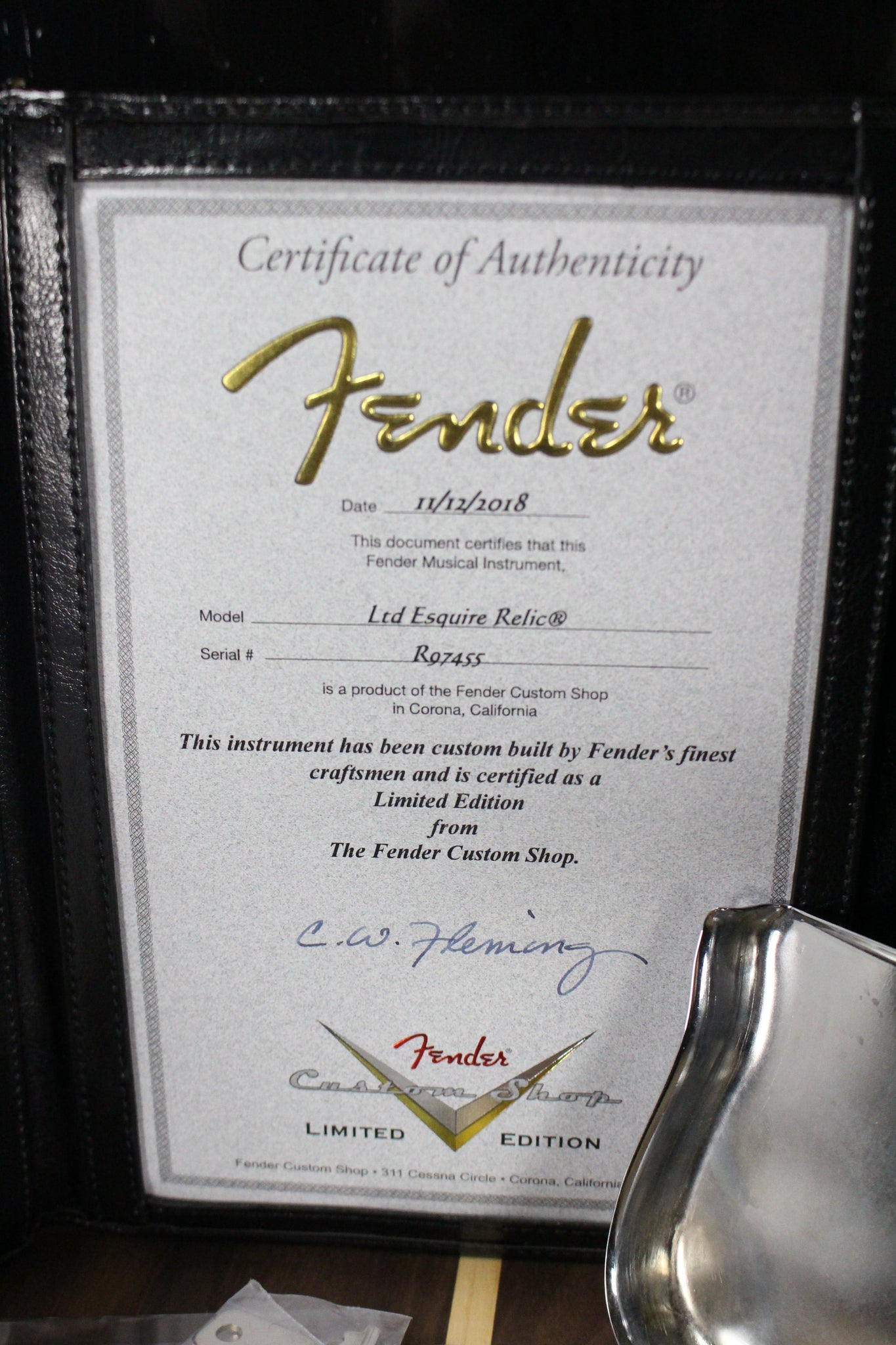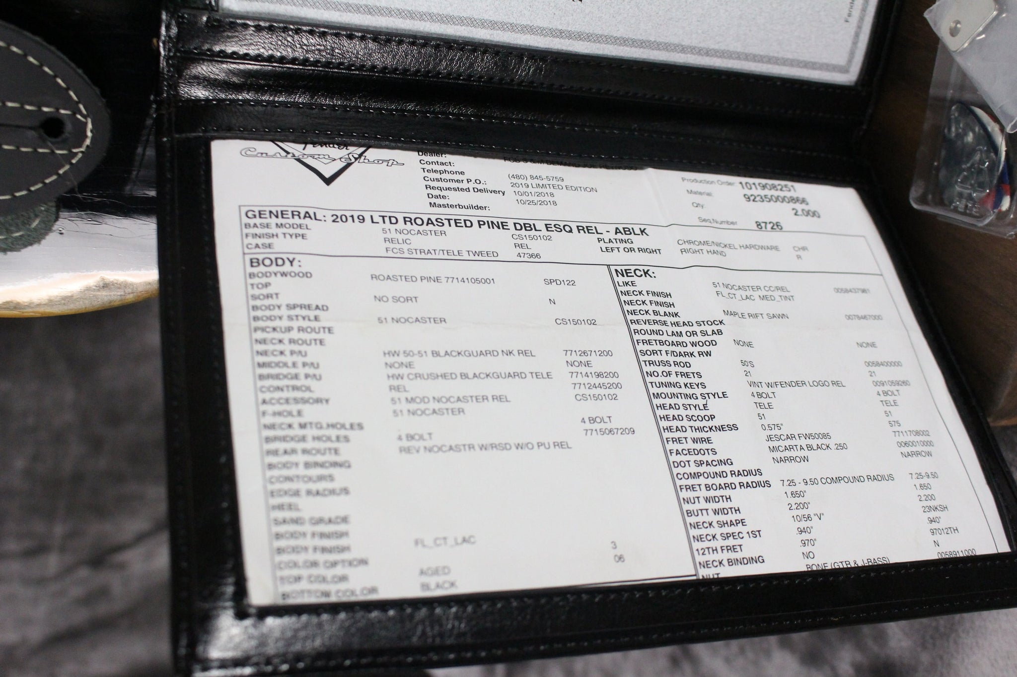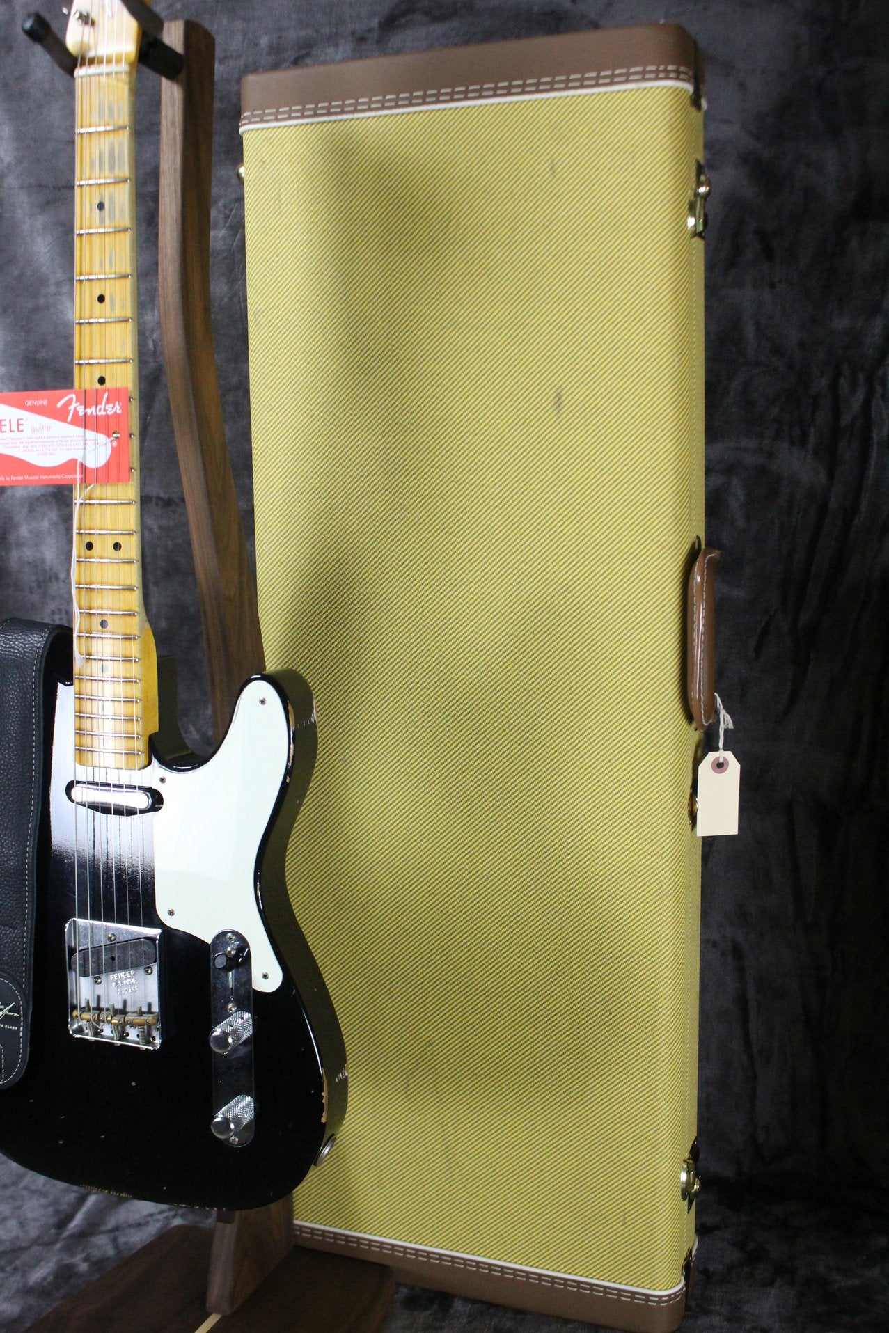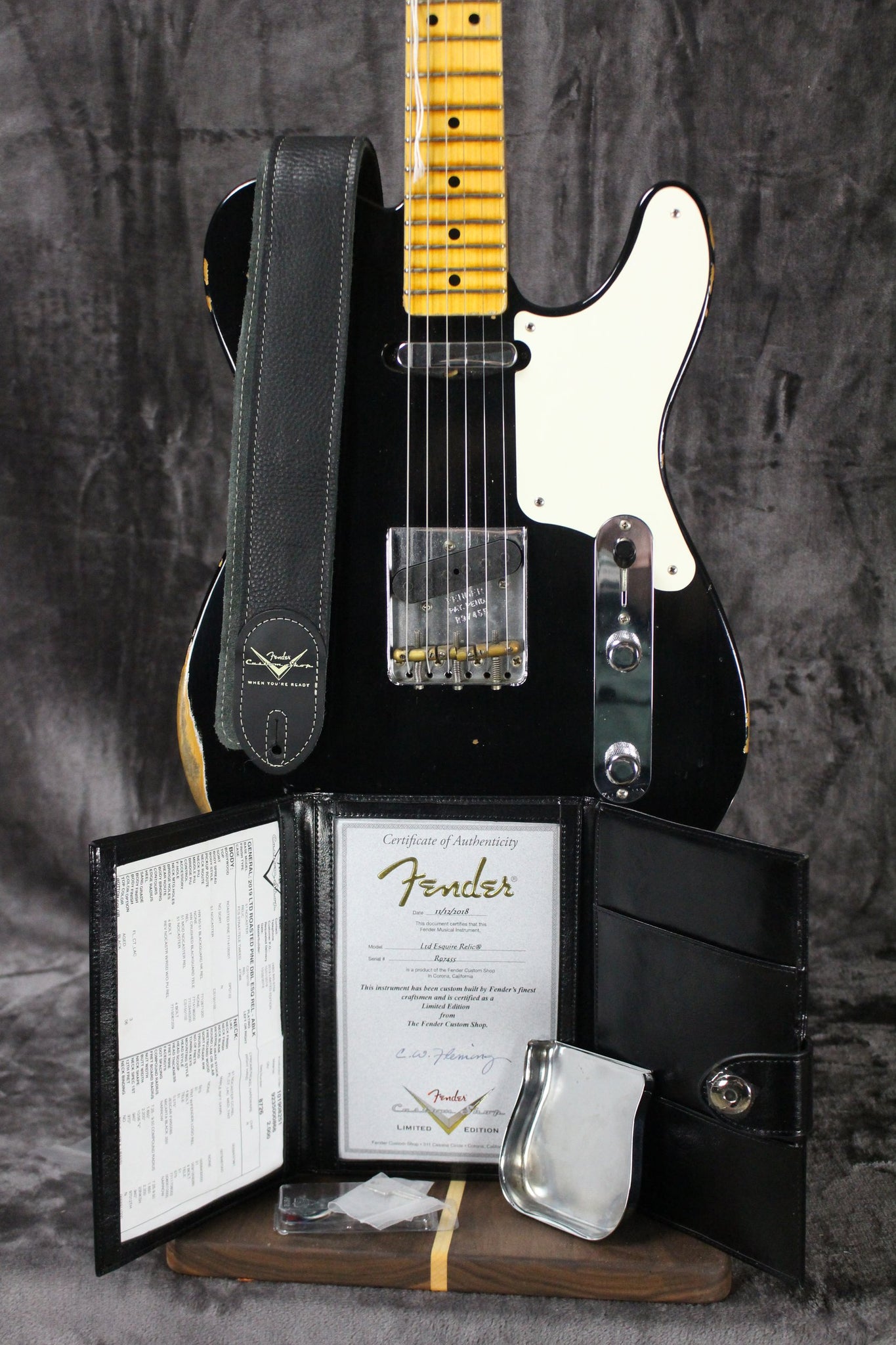 Pickups/Hardware: Fender Custom Shop hand wired pickups: Neck: 50-51 Blackguard Bridge: Crushed Blackguard, Fender vintage style tuning keys, Fender Relic RSD saddles, chrome relic nocaster knobs, bone nut.