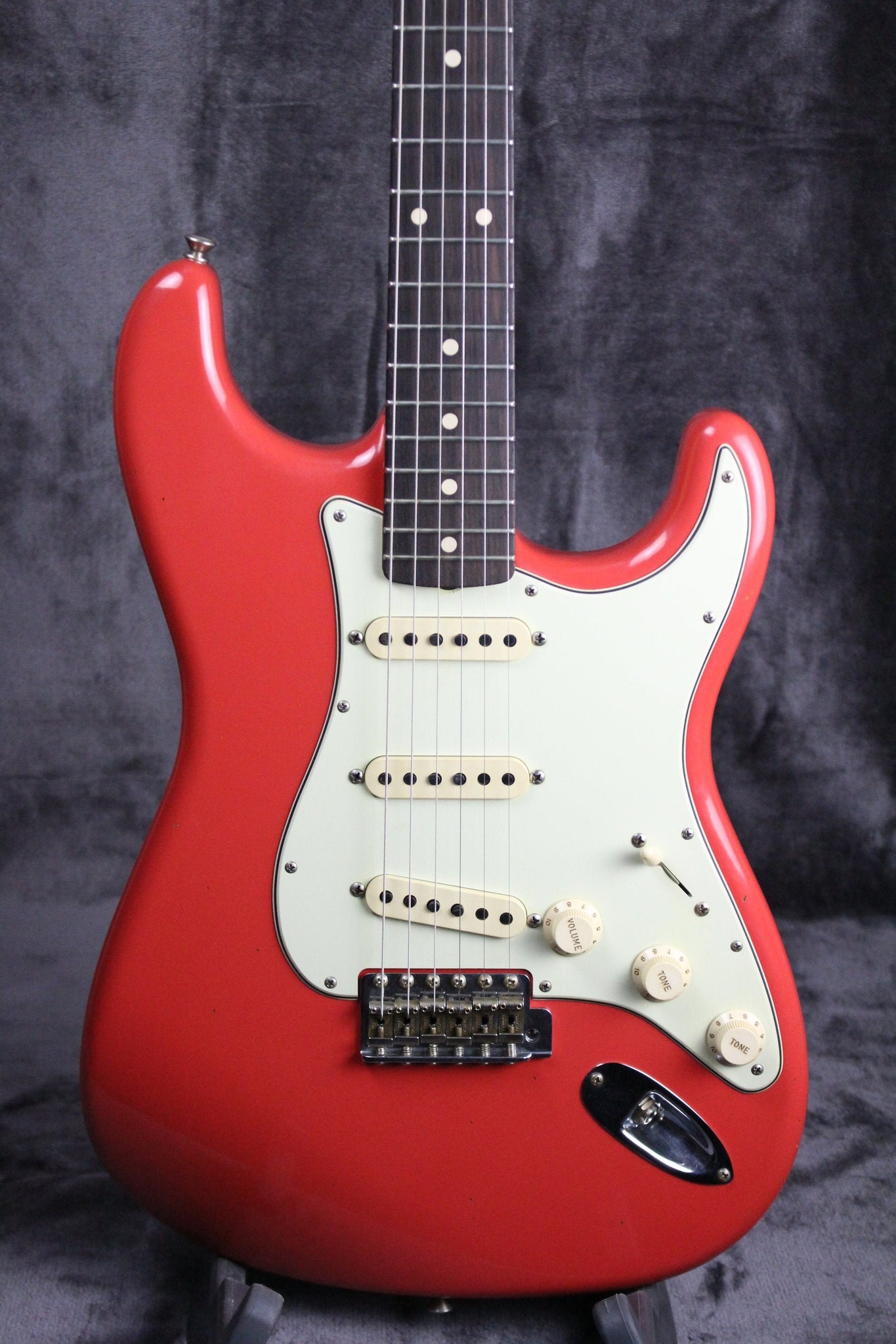 Pickups/Hardware: Three hand-wound WW10 Strat single coil pickups, vintage style tuning keys, master volume/two tone controls/5-way pickup selector, American Vintage 6-saddle bridge, Vintage Modified wiring #2, 3-ply mint green pickguard.