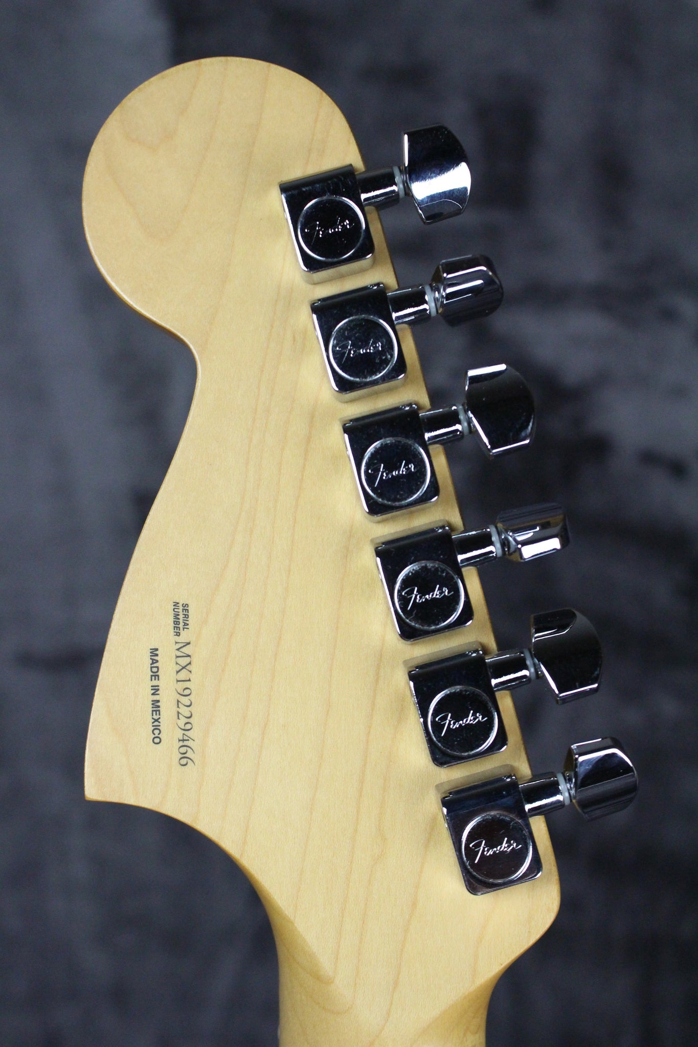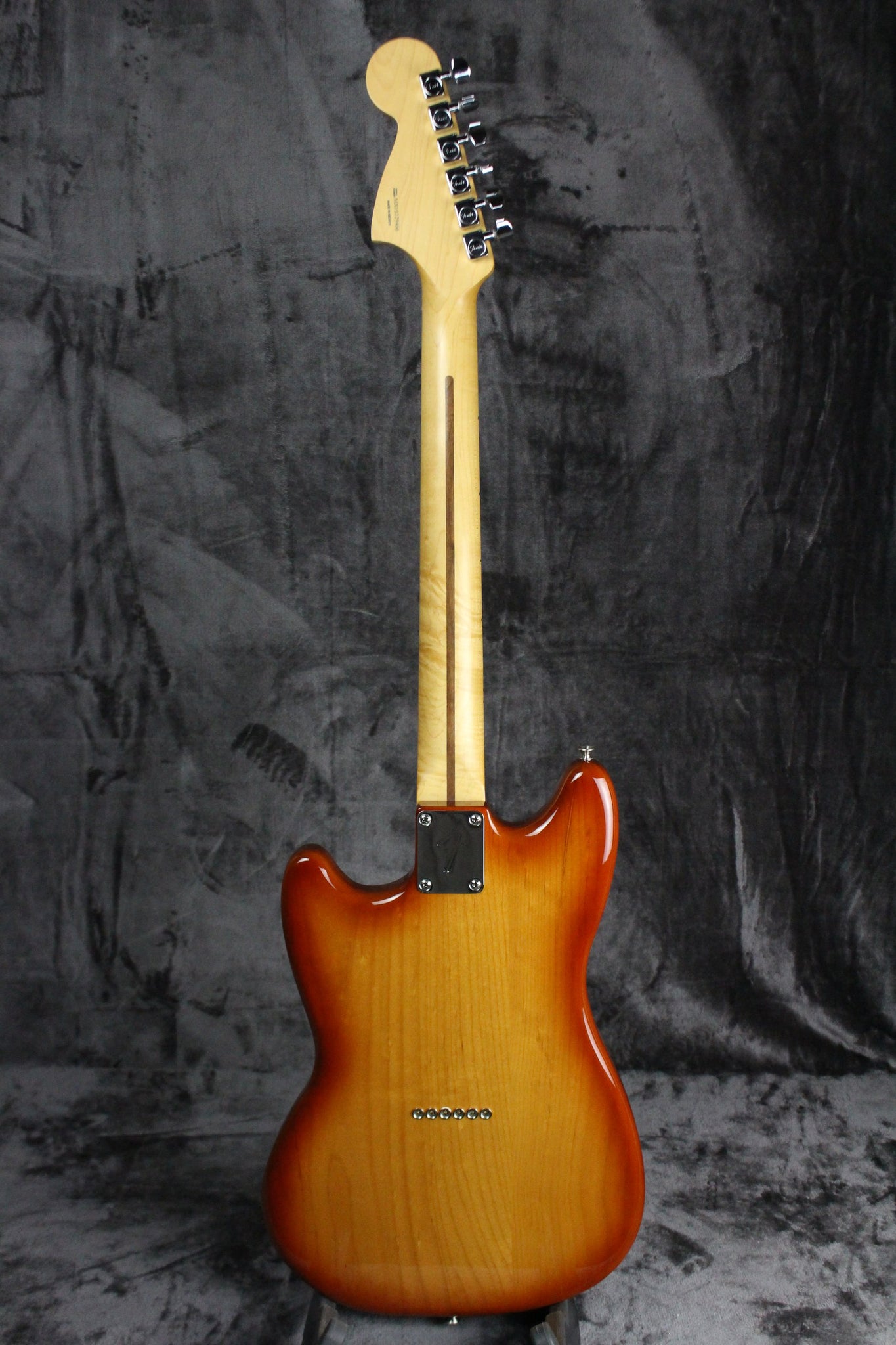 Pickups/Hardware: Two Fender Mustang single coil pickups, master volume/master tone controls/3-way pickup selector, Fender closed gear tuning keys, 3-ply black pickguard, string through the body six saddle bridge.