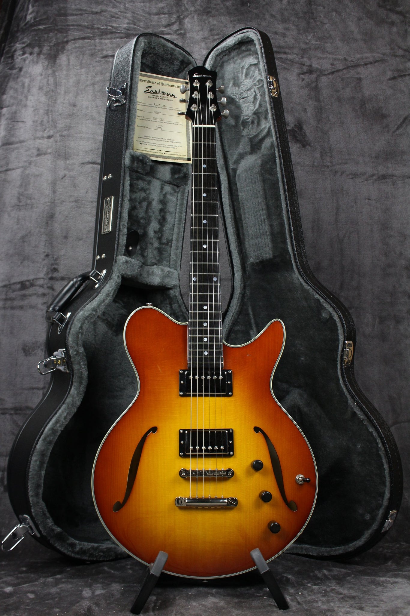 Case: This guitar ships in the original Eastman hard-shell case, professionally packaged, and fully insured.