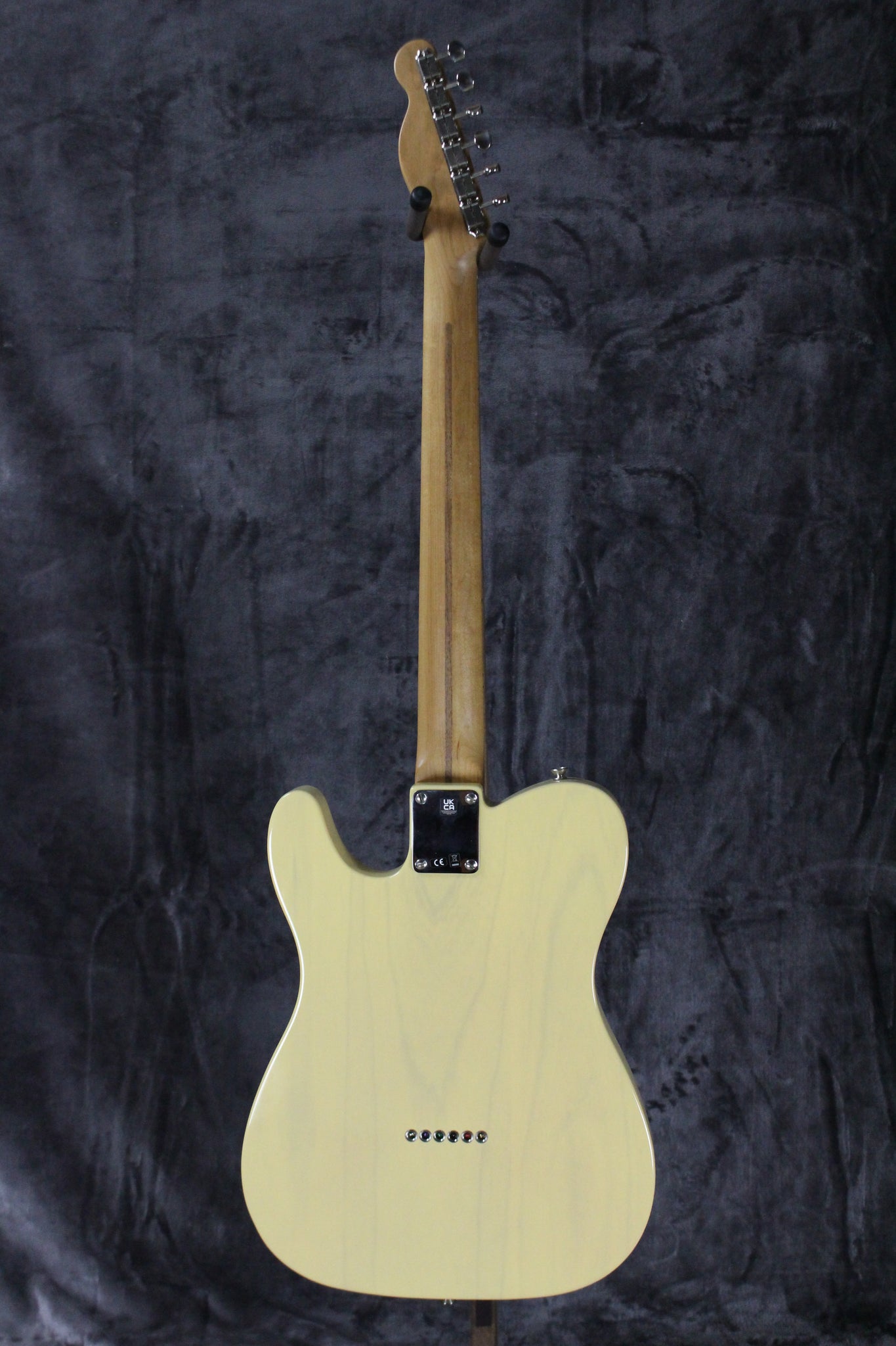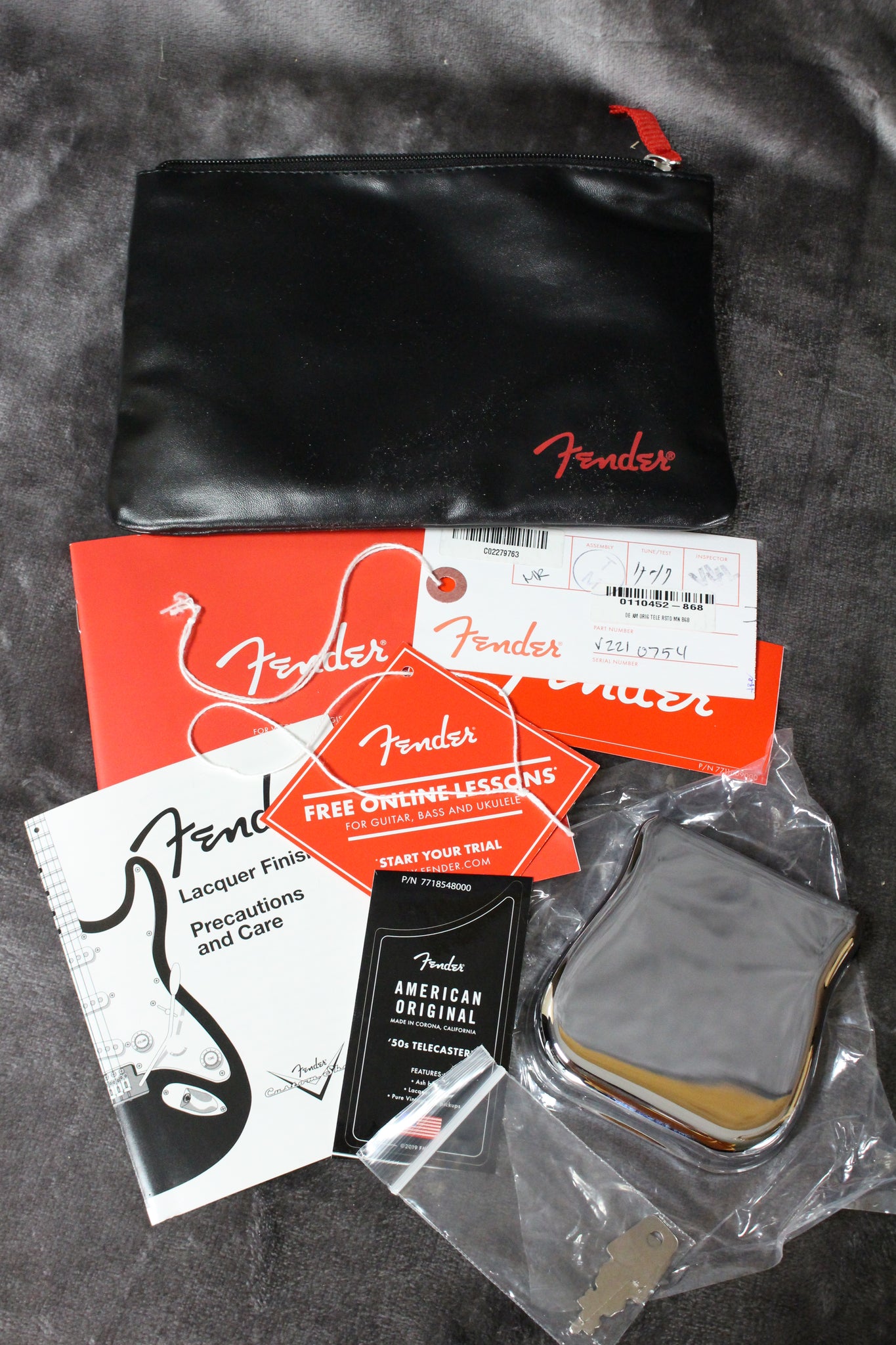 Pickups/Hardware: Fender Pure Vintage ‘52 single coil pickups, Fender Deluxe tuning keys, 3-saddle American Vintage strings-through-body Tele bridge with brass saddles, knurled chrome knobs, bone nut.
