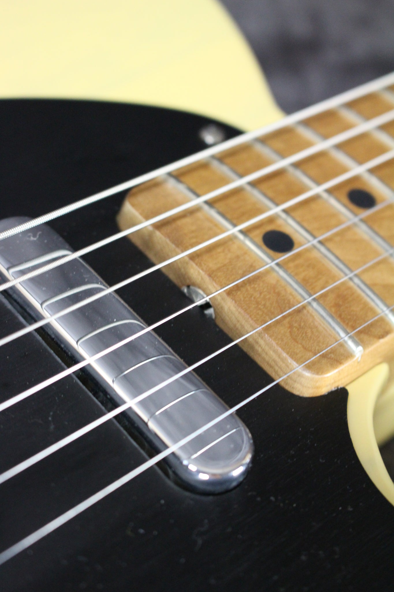 Neck: Maple with a Maple fingerboard, 25.5” scale length, 1.65” nut width, 21 frets, black dot inlays.