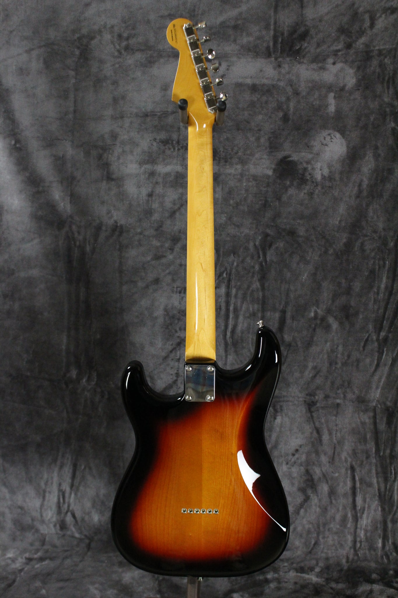 Pickups/Hardware: Fender Vintage-Style Single-Coil Strat pickups, vintage style tuning keys, 6-saddle American Vintage strings-through-body Strat hardtail bridge, white plastic knobs, synthetic bone nut.