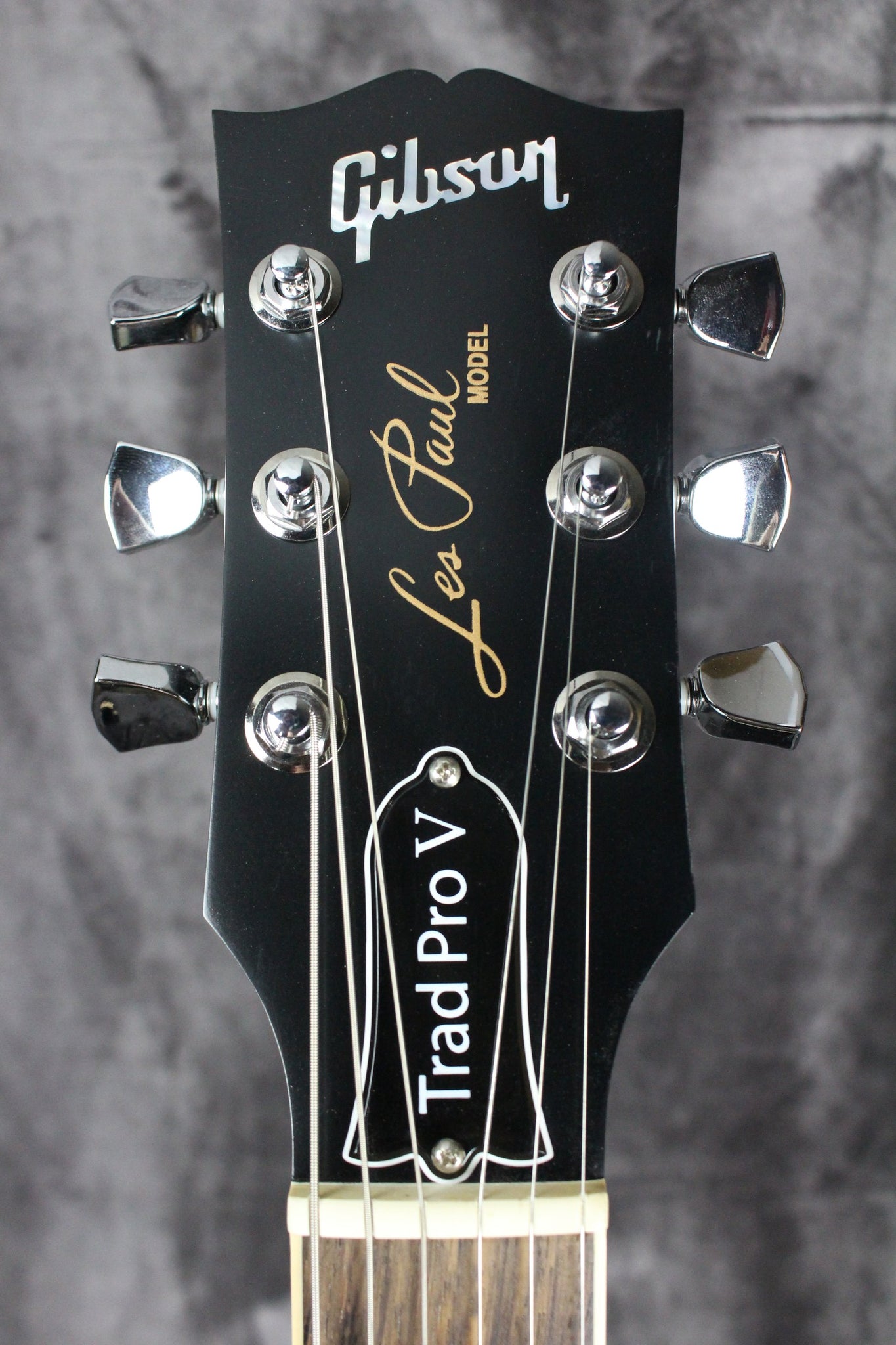 Summary: The Gibson Trad Pro V shares the same DNA with a Les Paul—mahogany body and neck, carved maple top—but it's also a completely evolved instrument. The body is weight-relieved, making it super comfortable on the shoulder. The neck has an asymmetrical shape and thanks to the compound radius rosewood fretboard, you'll find it easier to play in higher registers. Gibson loads the Pro V with dual Tradbucker pickups. The neck position humbucker is underwound for a warm, organic sound and the bridge is overwound, increasing the output. Both use Alnico V magnets. A push/pull performs a coil split or coil tap—it's your choice via a dip switch in the control cavity. In coil-split mode, the treble tone push/pull toggles between the inner and outer coils and the rhythm tone push/pull activates a phase switch.