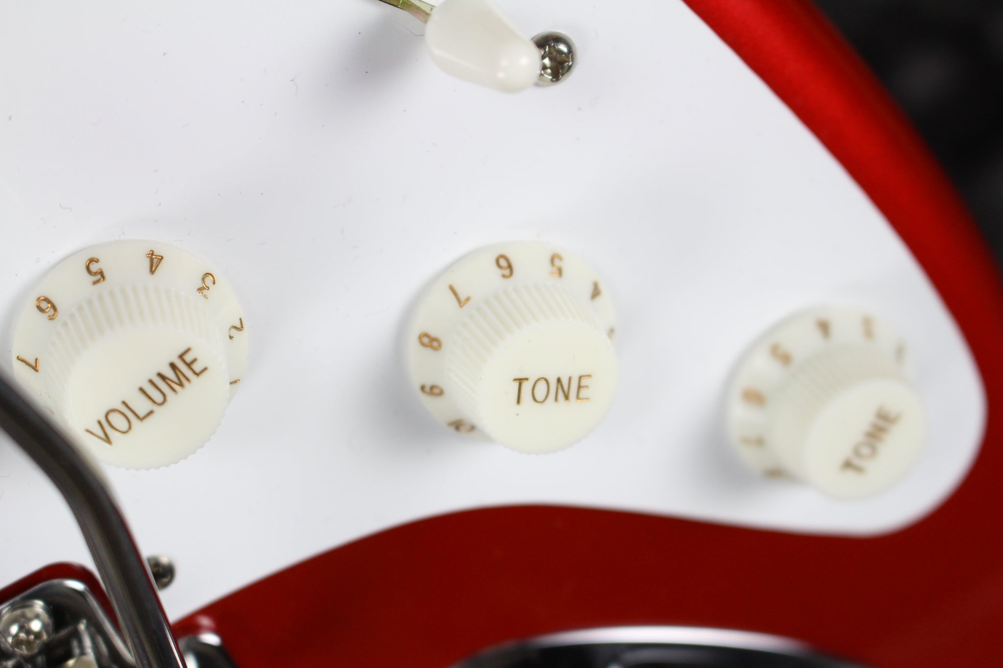 Pickups/Hardware: EMG DG-20 active alnico pickups (E11even Loaded Pickguard), vintage style tuning keys, vintage style tremolo bridge with a short 4.25" arm, white plastic knobs, synthetic bone nut.