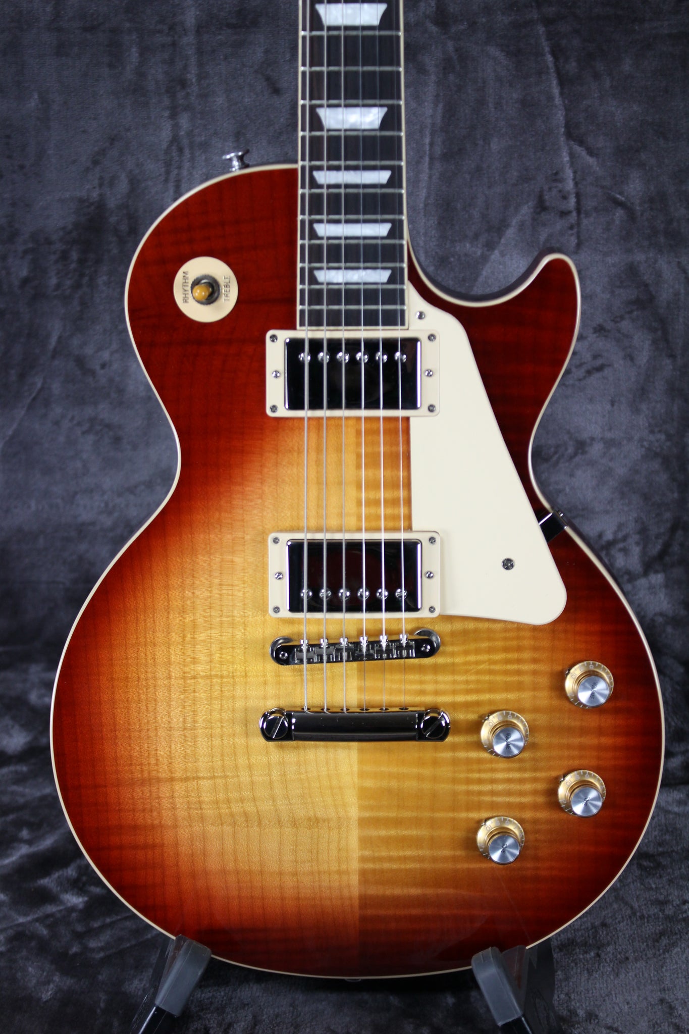 Pickups/Hardware: Gibson Burstbucker humbucker pickups, Grover Rotomatic Kidney tuning keys, ABR-1 Tune-O-Matic bridge, aluminum Stop Bar tailpiece, Gold Top Hat with Silver Reflector & Dial Pointer knobs, Graph Tech nut.