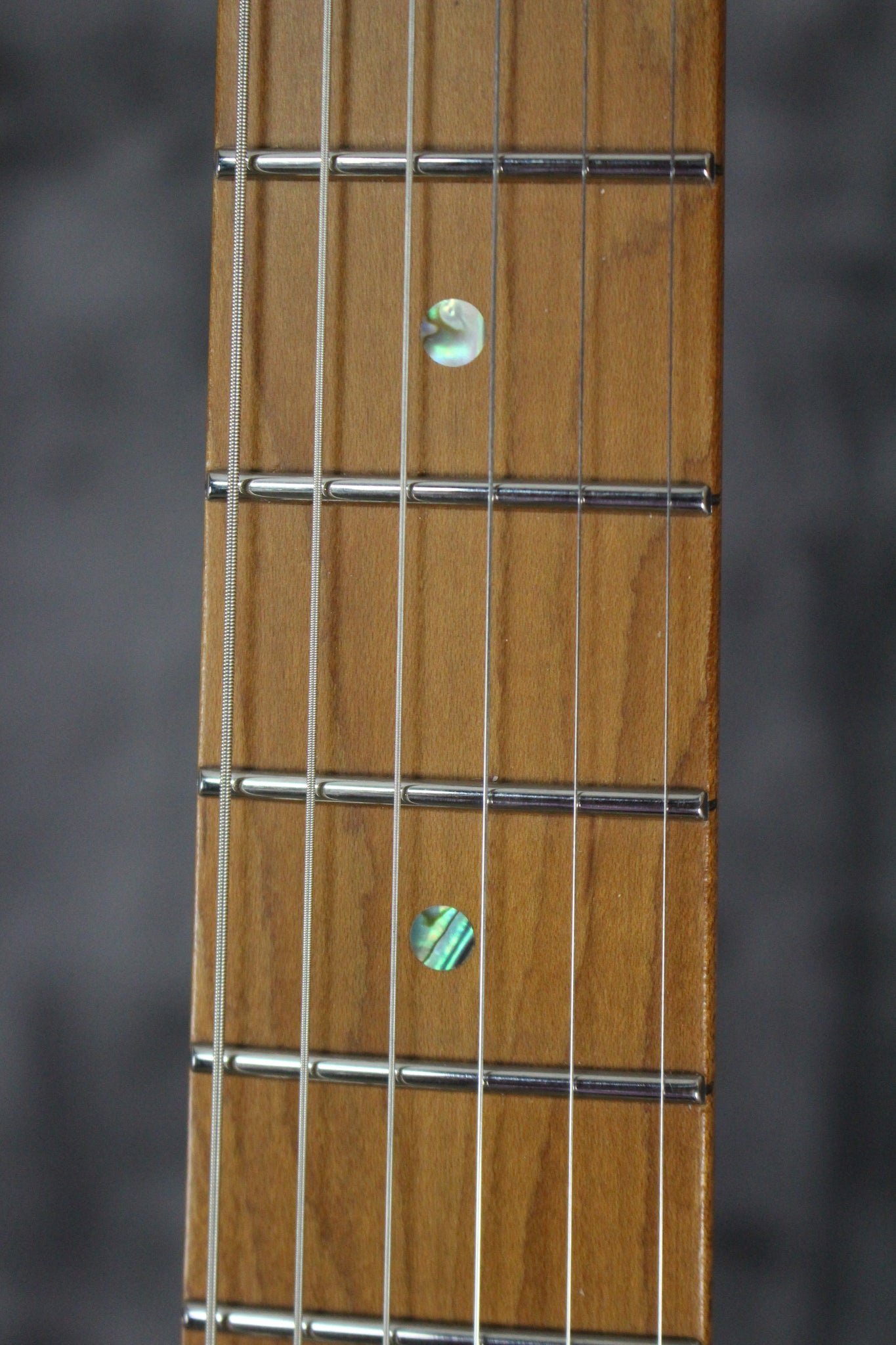 Neck: Roasted Maple with a Roasted Maple fingerboard, 25.5” scale length, 1.65” nut width, 24 frets, abalone dot inlays.