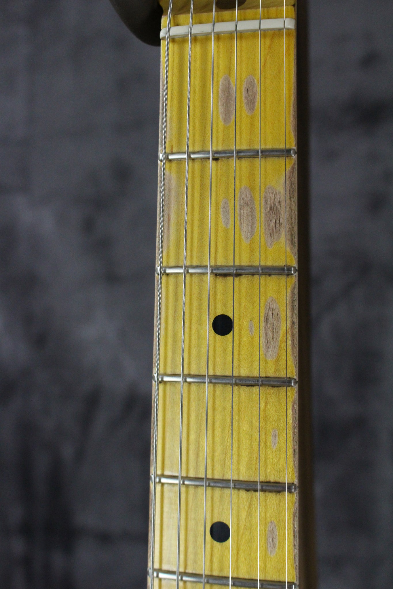 Neck: Maple with a Maple fingerboard, 25.5” scale length, 1.62” nut width, black dot inlays, 21 frets.