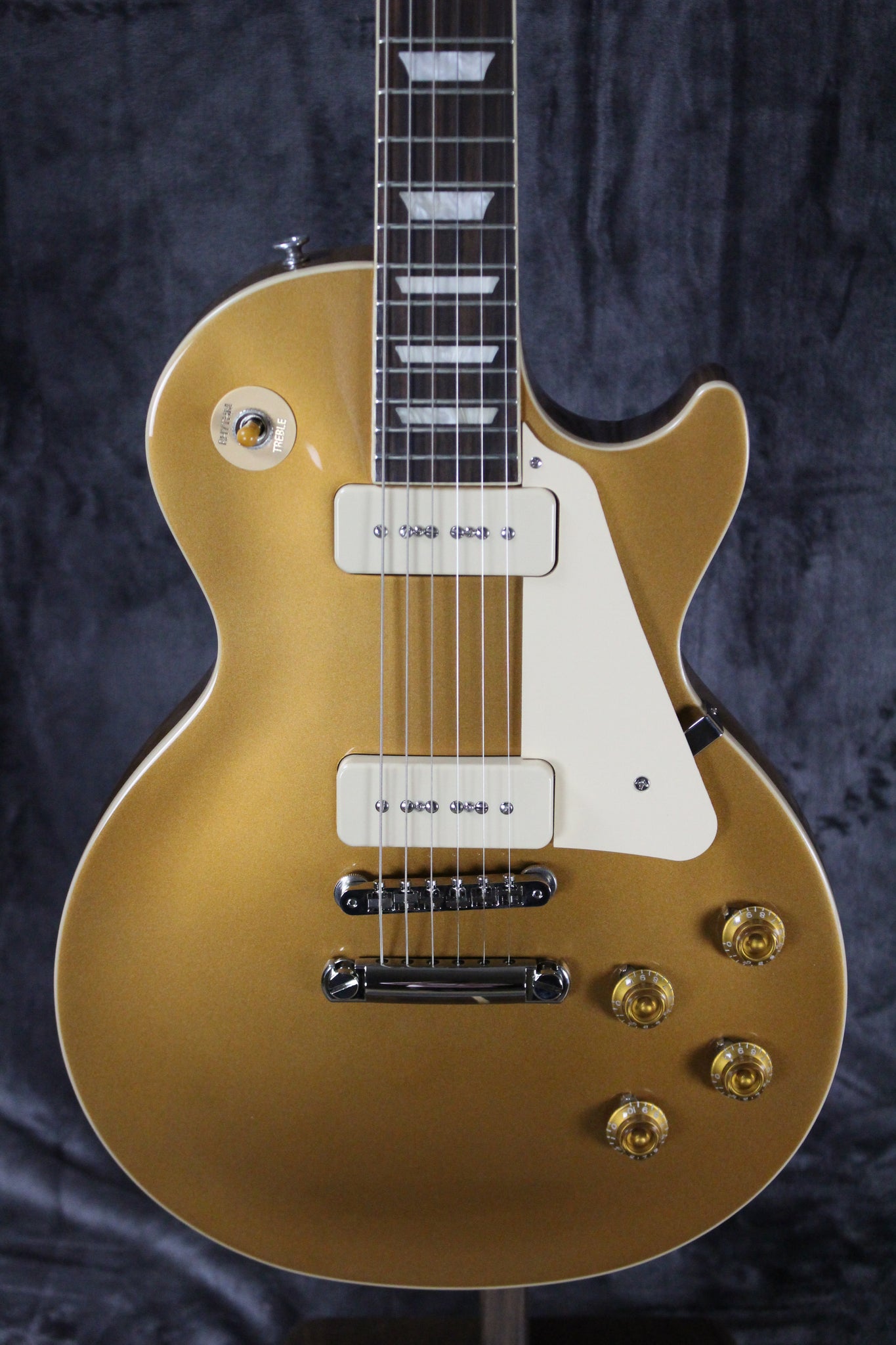 Pickups/Hardware: Gibson P-90 Single-coil pickups, Vintage Deluxe tuning keys with Keystone Buttons, ABR-1 Tune-O-Matic Bridge with Stopbar Tailpiece, Gold Top Hats with Dial Pointers knobs, Graph Tech nut.