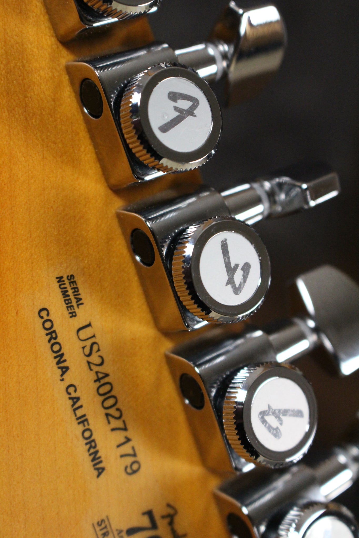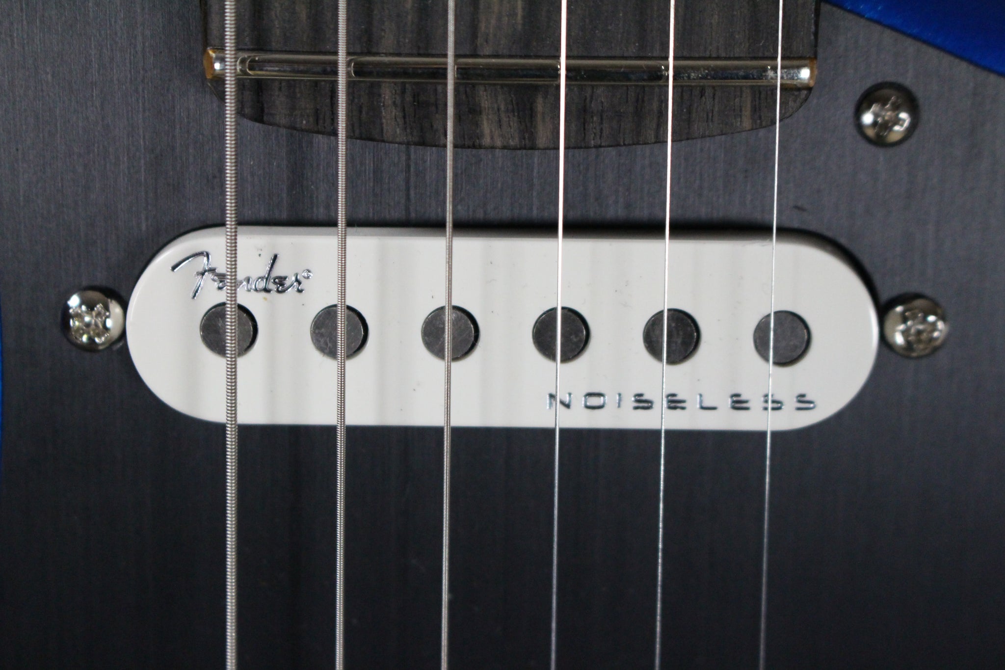 Pickups/Hardware: 2 Ultra II Noiseless single coil pickups, 1 Haymaker humbucker, Fender locking tuning keys, black anodized pickguard, Tusq nut, 2-Point American Ultra Synchronized Tremolo system, S-1 switch