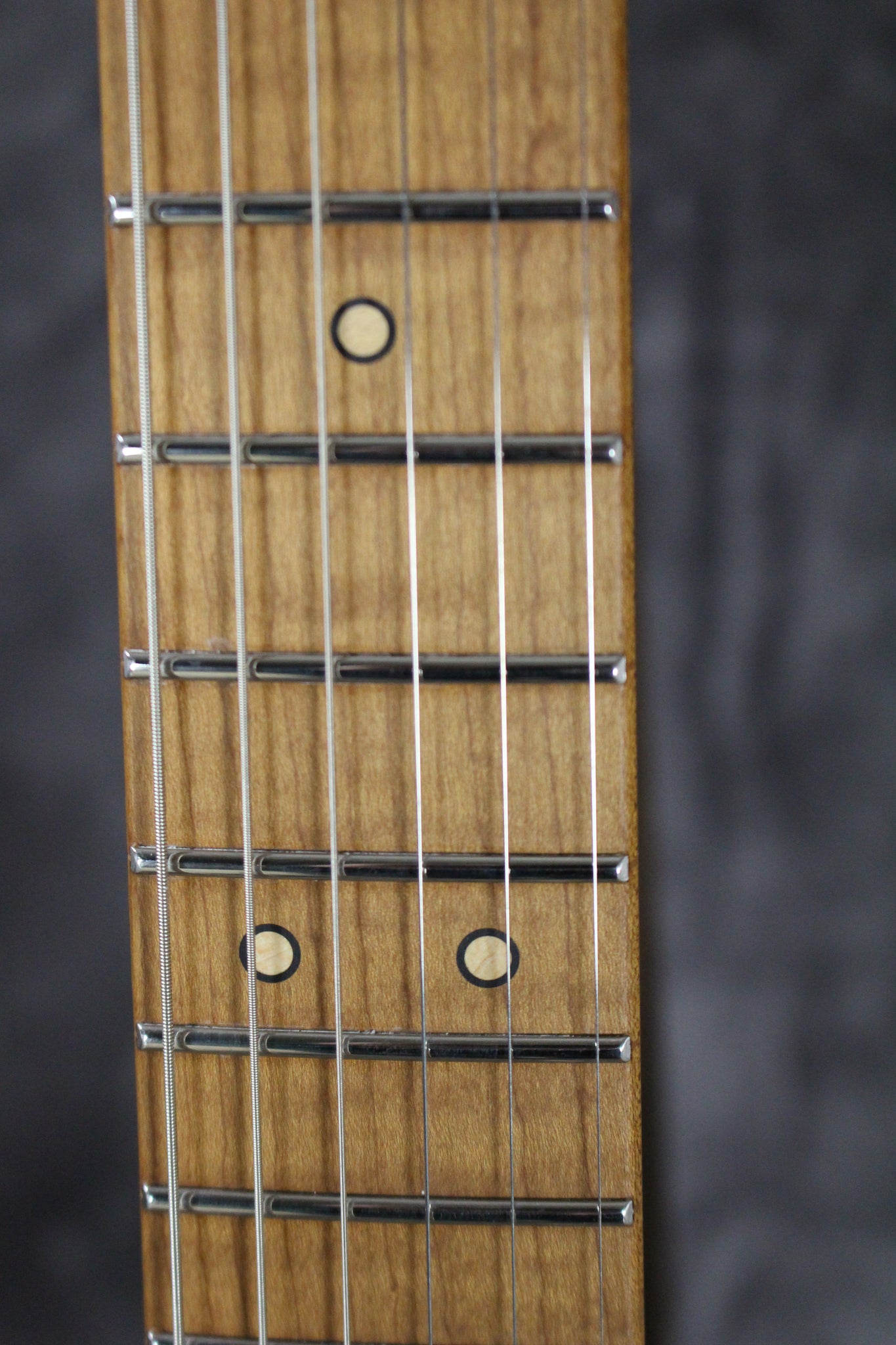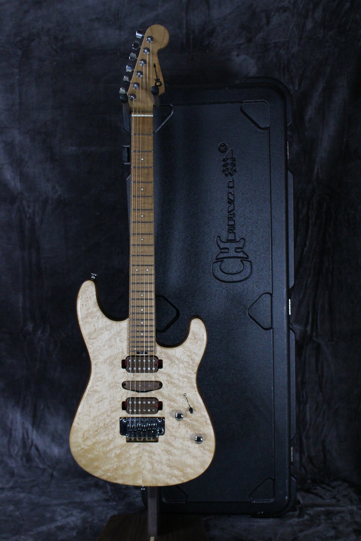 Pickups/Hardware: Charvel Custom MF Humbucking pickups, Sperzel Locking tuning keys, recessed Charvel Locking Tremolo bridge, Luminlay numbered dome control chrome knobs, bone nut.