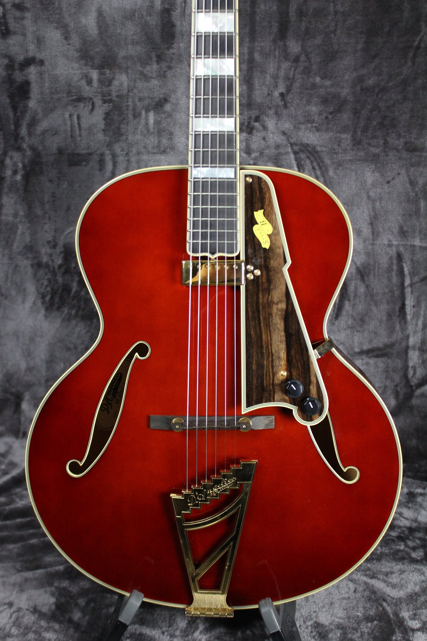 Pickups/Hardware: USA Seymour Duncan Johnny Smith Floating Mini-Humbucker pickup, Grover Super Rotomatic tuning keys, Floating Ebony bridge, D’Angelico Stairstep tailpiece, 2 Mini-Hexagon knobs, Bone nut.