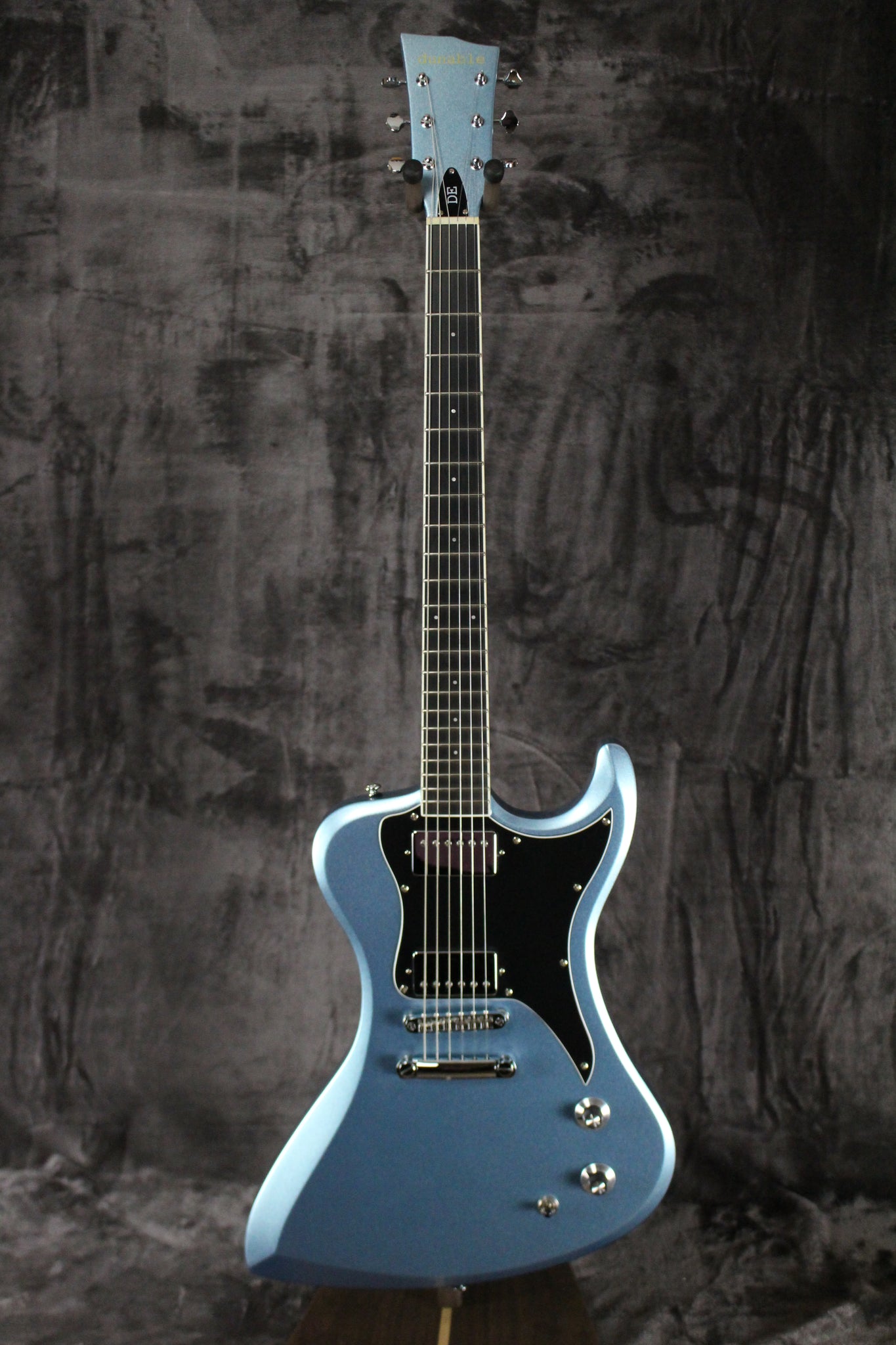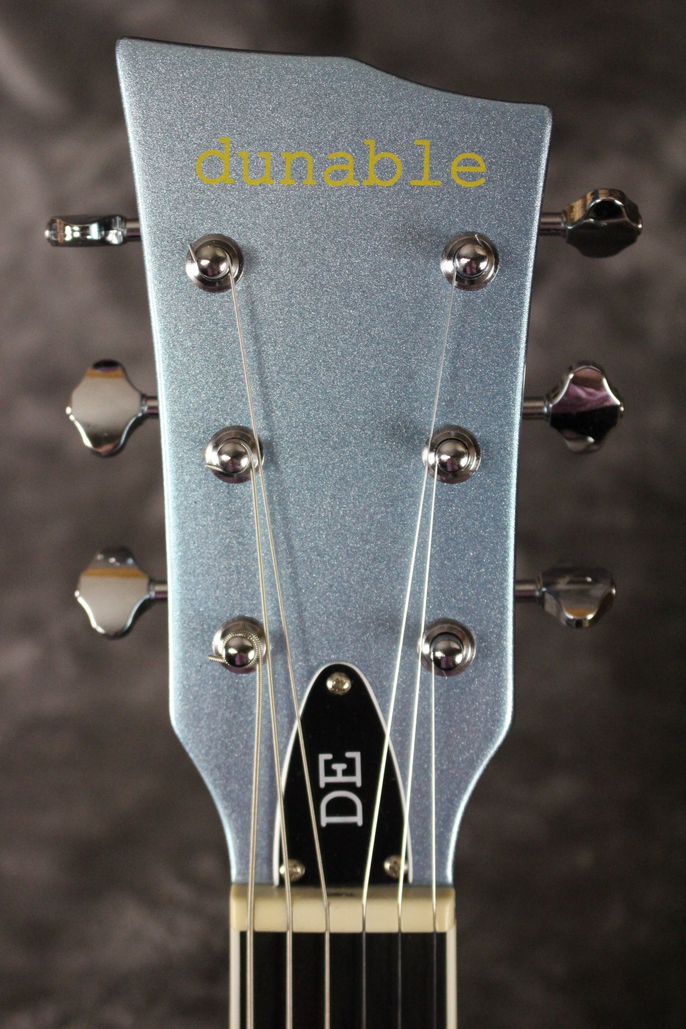 This Dunable DE R2 was inspired by the era of leather and denim, walls of triple-stacked 4x12s, and leaded gas. Over the past decade, it has become a favorite to many, and despite its obvious heavy metal aesthetic, it is one of the most comfortable electric guitars in the world. The retro-futuristic body shape incorporates strategic arm and torso contours, making for a perfectly molded instrument that has become a player favorite.