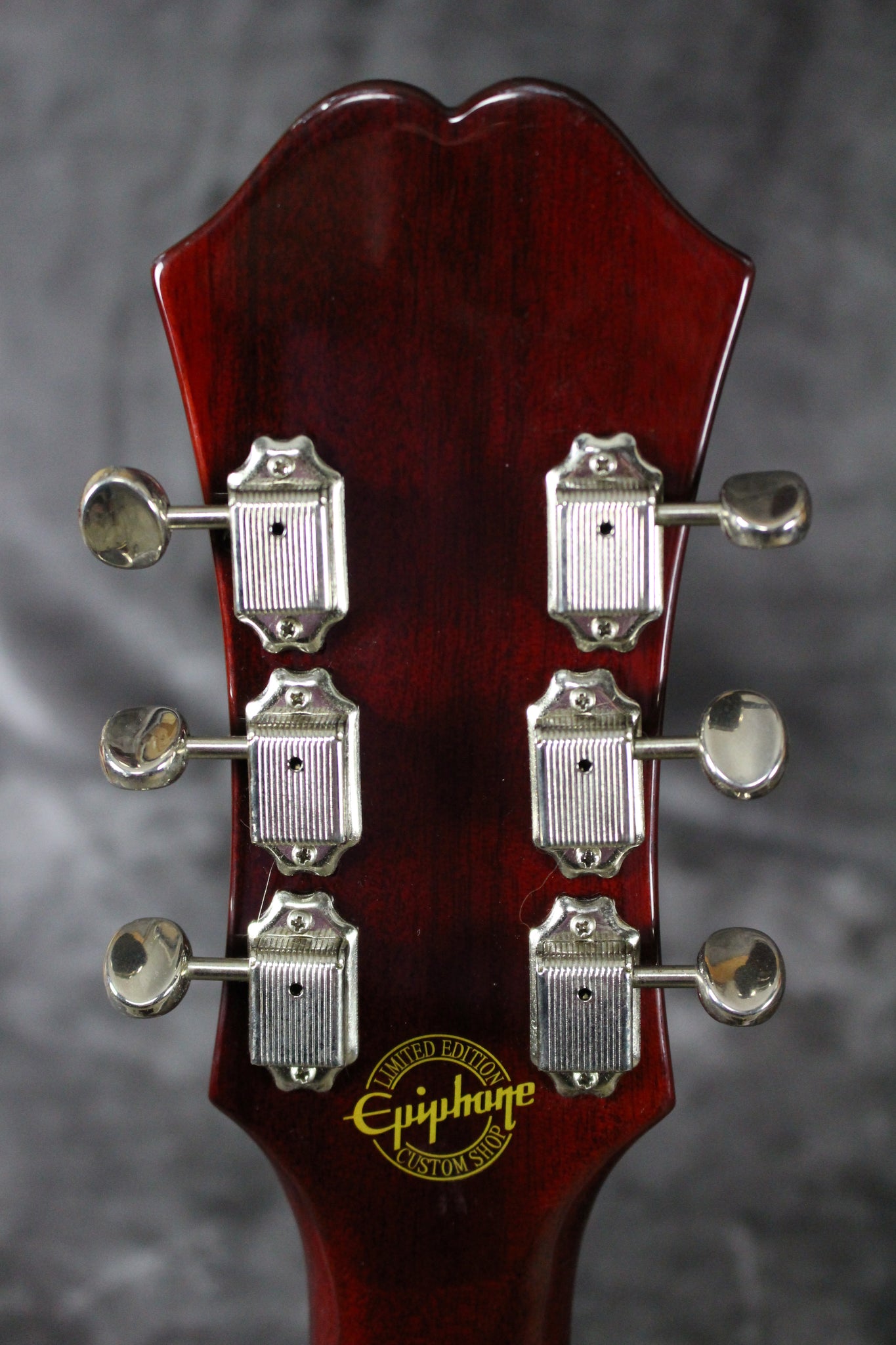 Pickups/Hardware: Epiphone P-90 dogear pickups, Wilkinson 14:1 tuning keys, LockTone Tune-o-matic bridge, Bigsby B700 tailpiece, gold top hats knobs, bone nut.