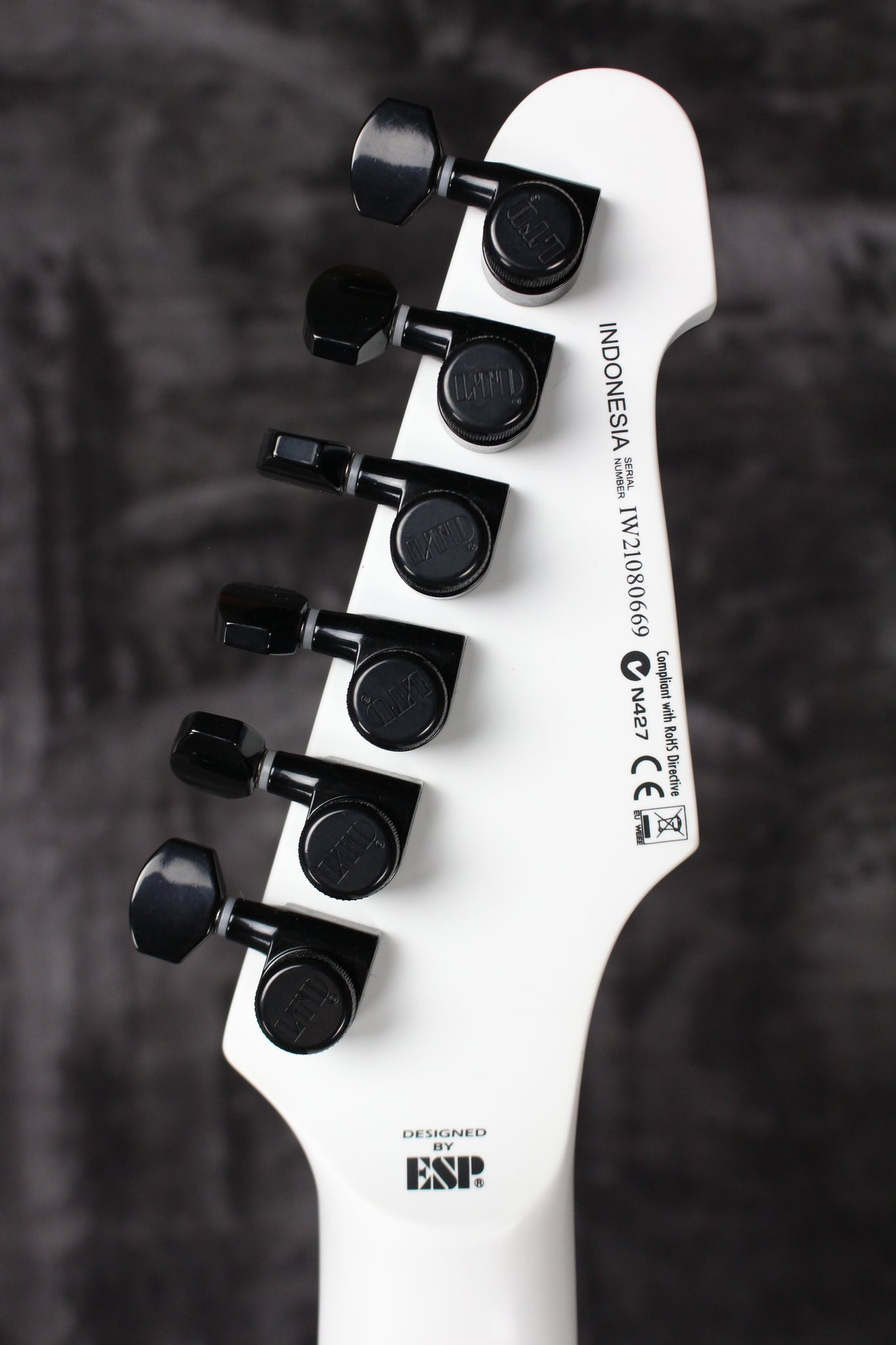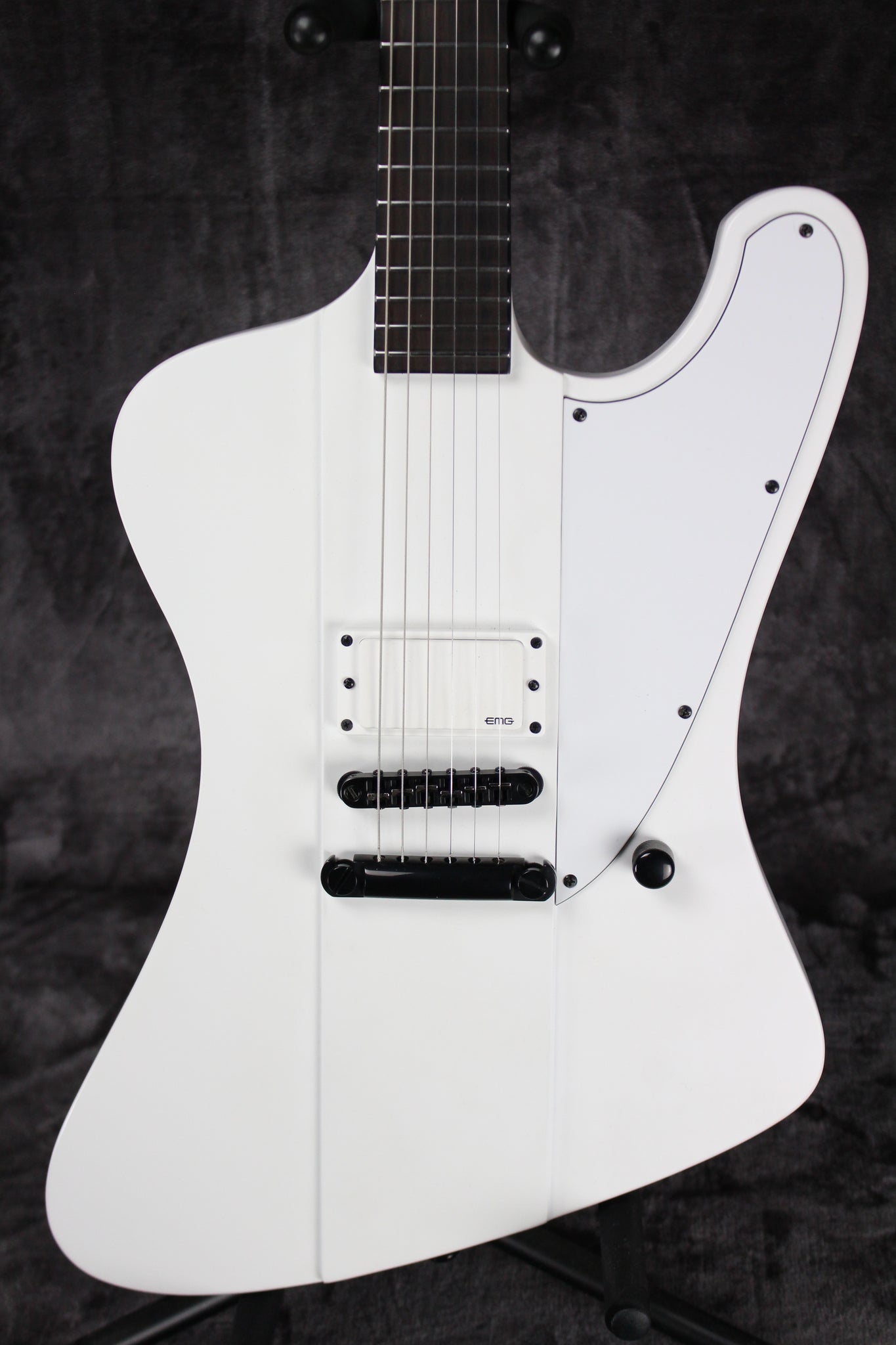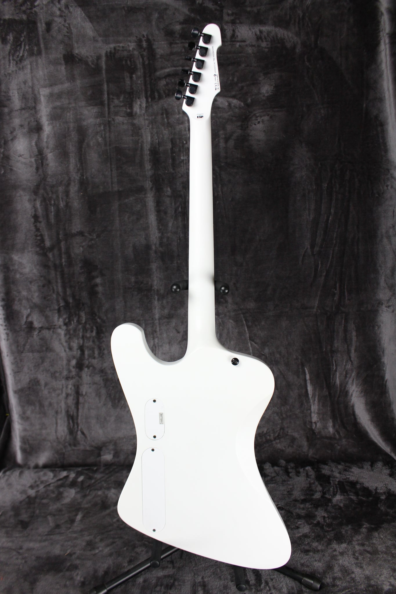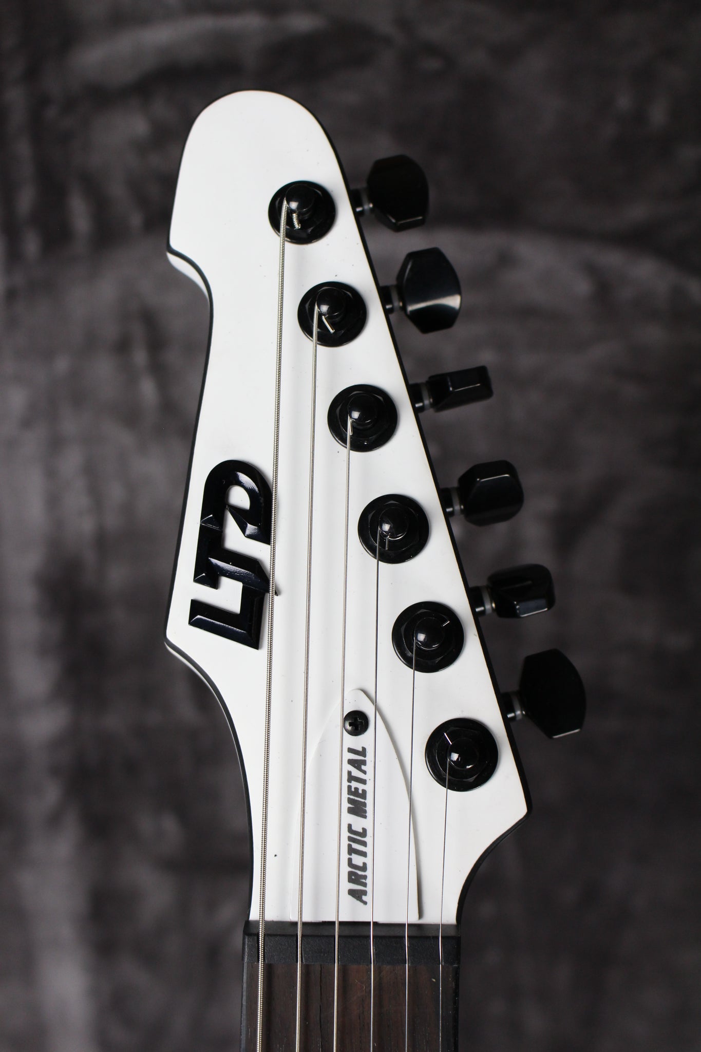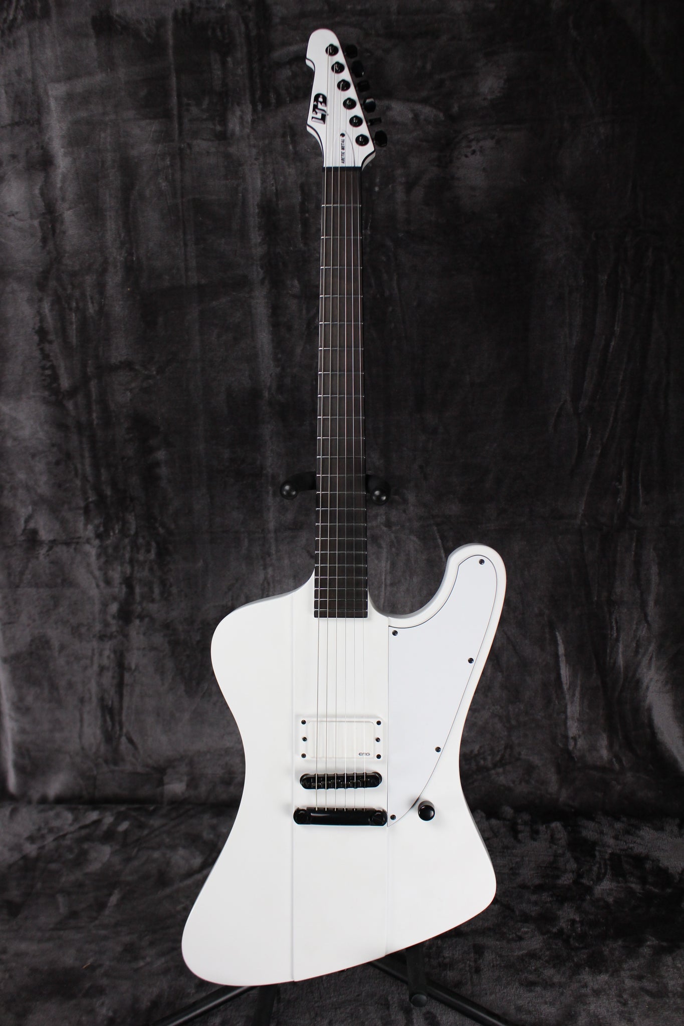 Summary: This 2021 ESP LTD Phoenix Arctic Metal feature a Snow White Satin finish, a single premium-quality pickup with matching white cover, and Macassar ebony fingerboards with no inlays and glow-in-the-dark side markers. The Phoenix Arctic Metal features neck-thru-body construction at 25.5” scale, an aggressive EMG 81TW pickup with black logo, a single volume knob with push-pull control to split the pickup, a TonePros locking bridge and tailpiece, and 22 extra-jumbo stainless steel frets.