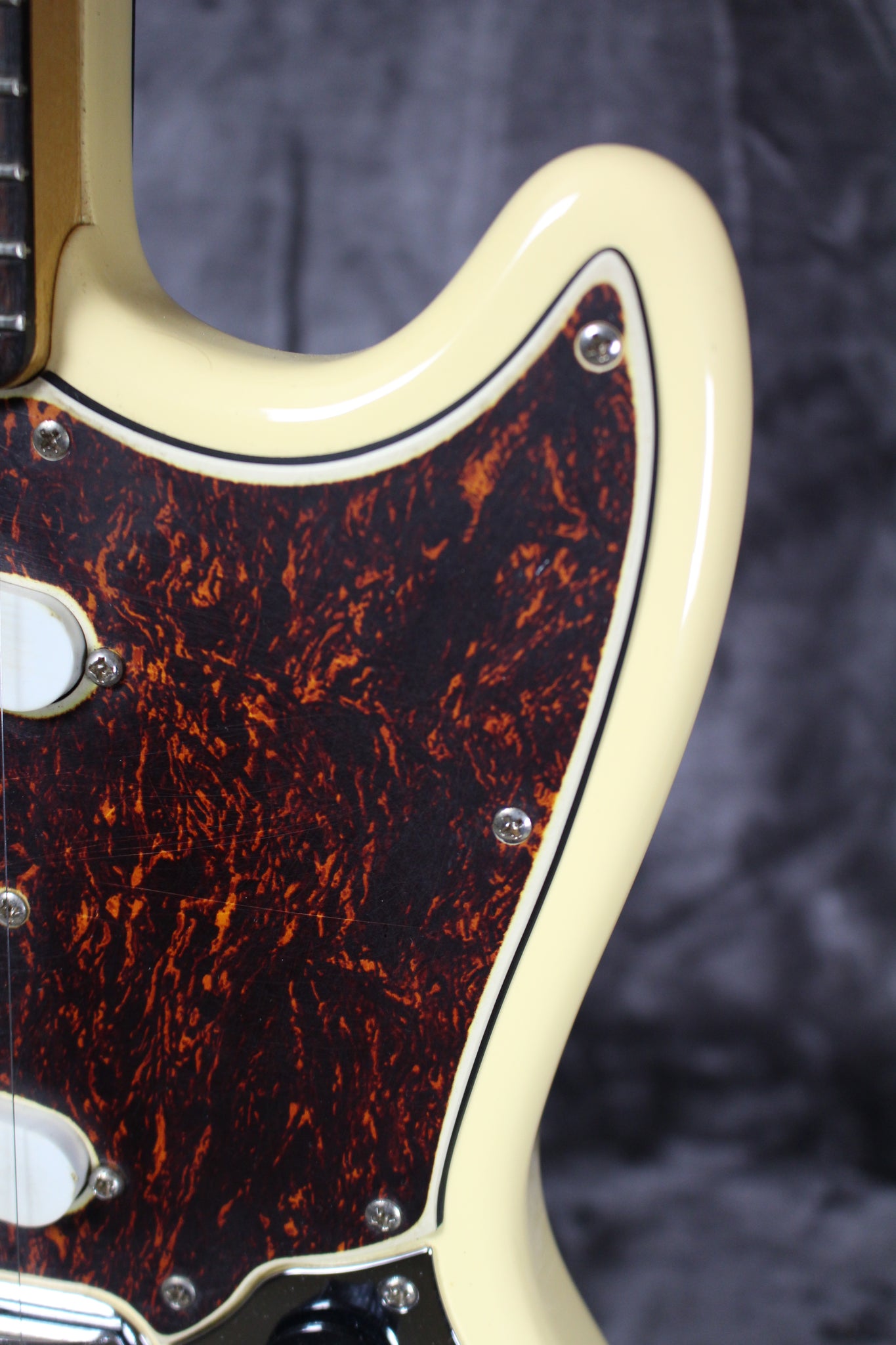Summary: This Fender Mustang has a sweet 1972 neck and a newer Fender Mustang body. Newer electronics complete this lil’ indie rock machine, or perhaps you’d rather go full John McLaughlin and gently jazz shred on this sublime piece.