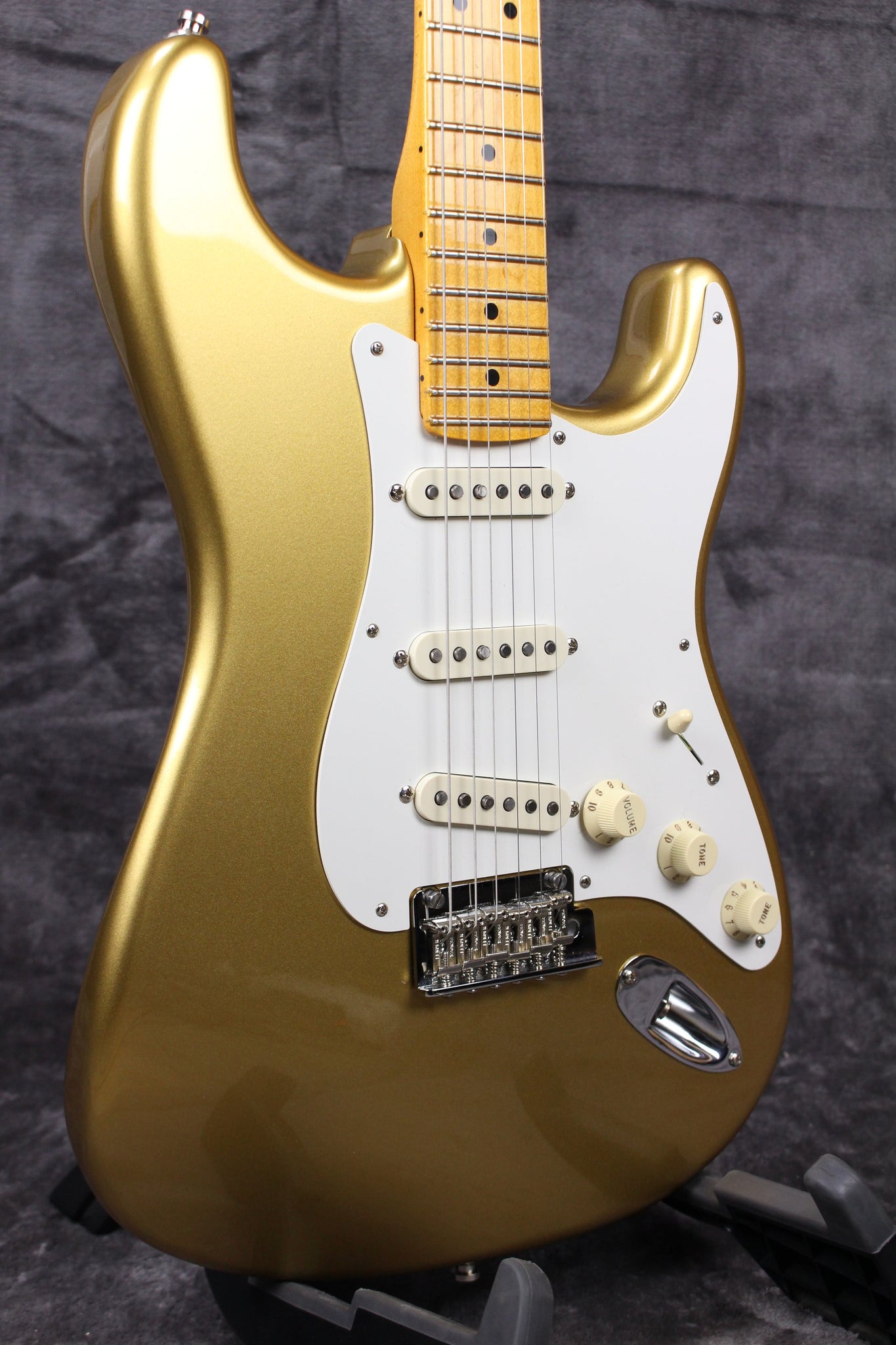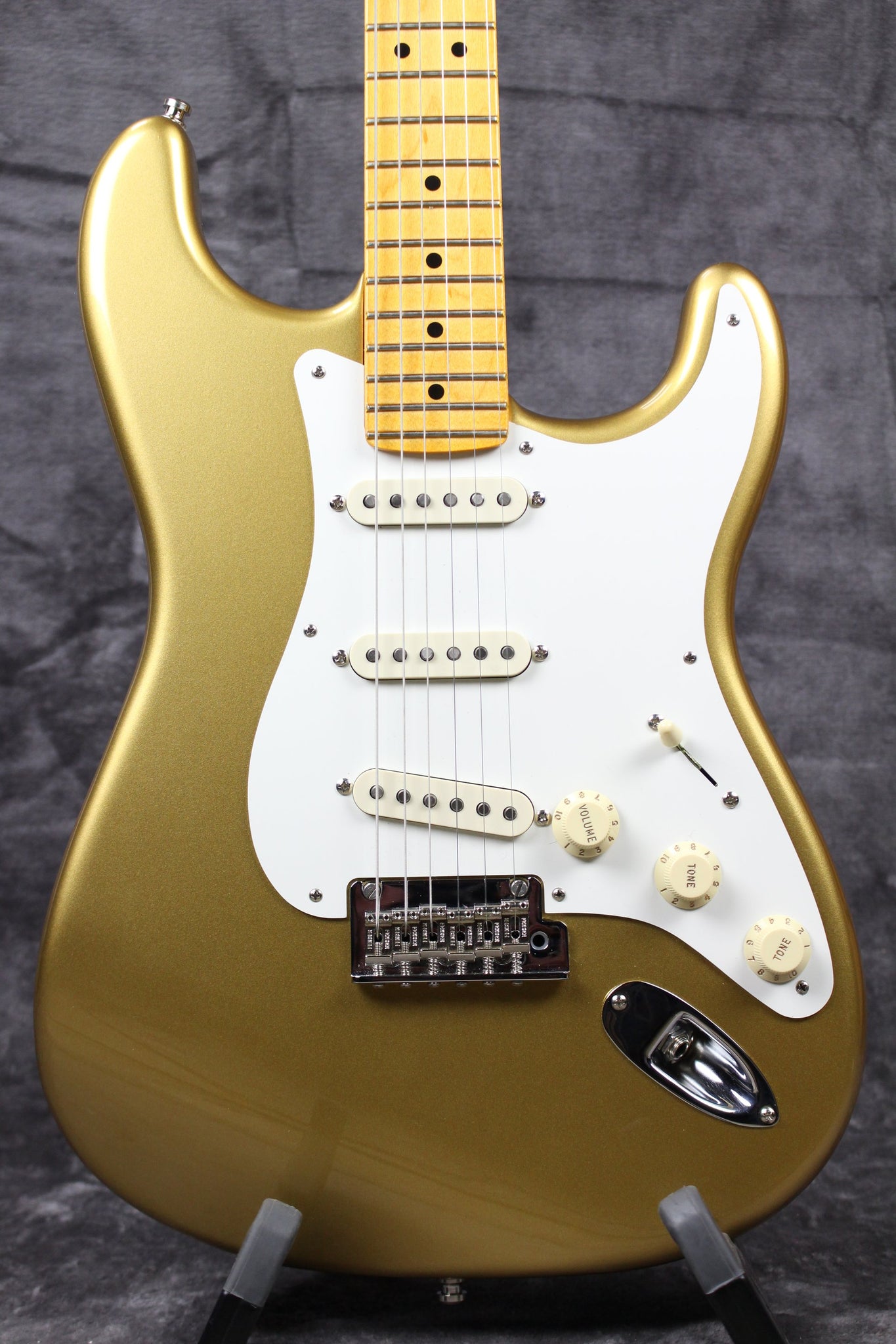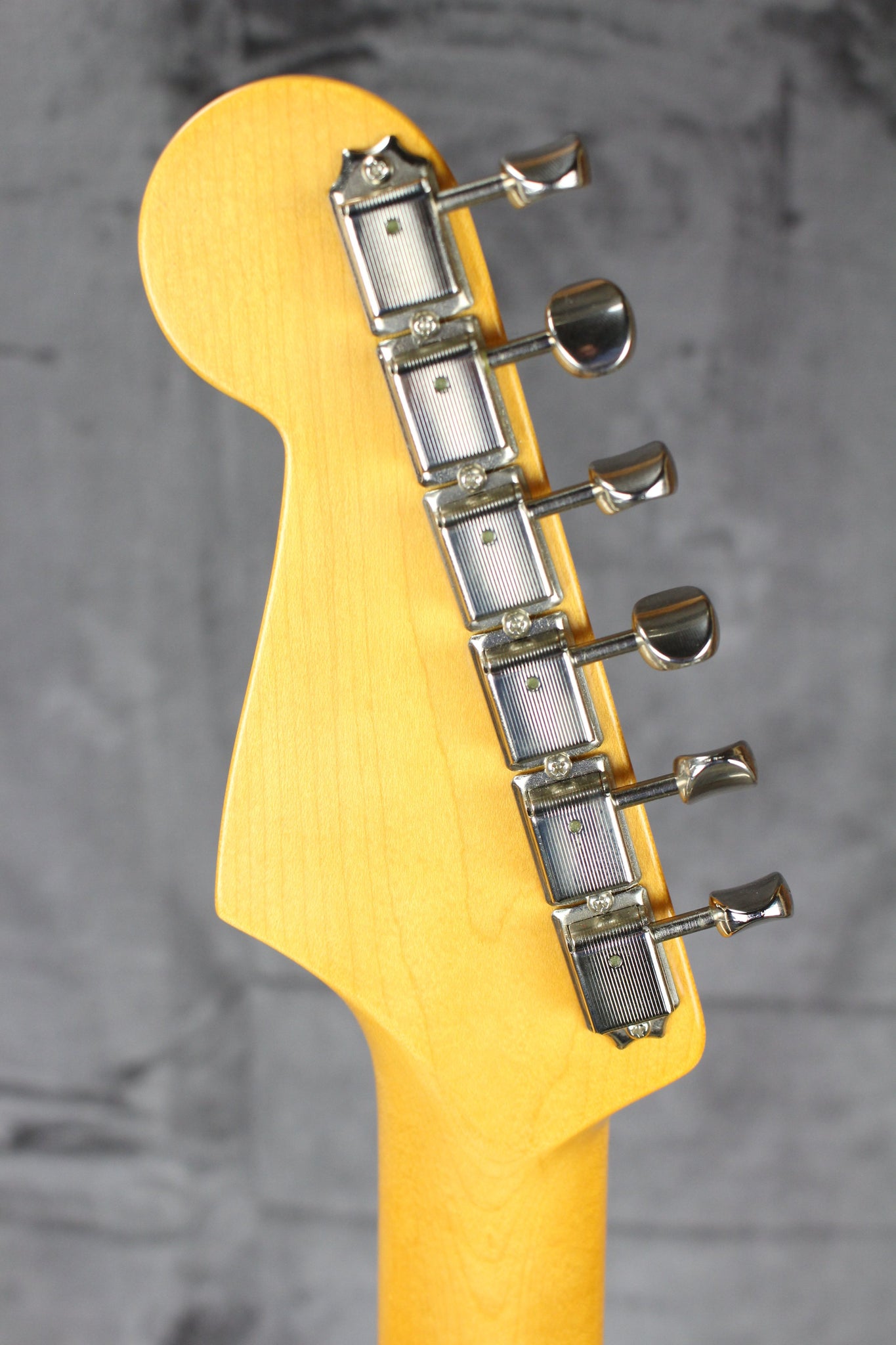 Pickups/Hardware: Dimarzio Area 51 single coil pickup in the neck, Area 51 in the middle position, and an Area 61 in the bridge, one master volume/one tone/one mid boost knob, five way pickup selector, 2-point synchronized tremolo system, vintage style locking tuners, single-ply pickguard.