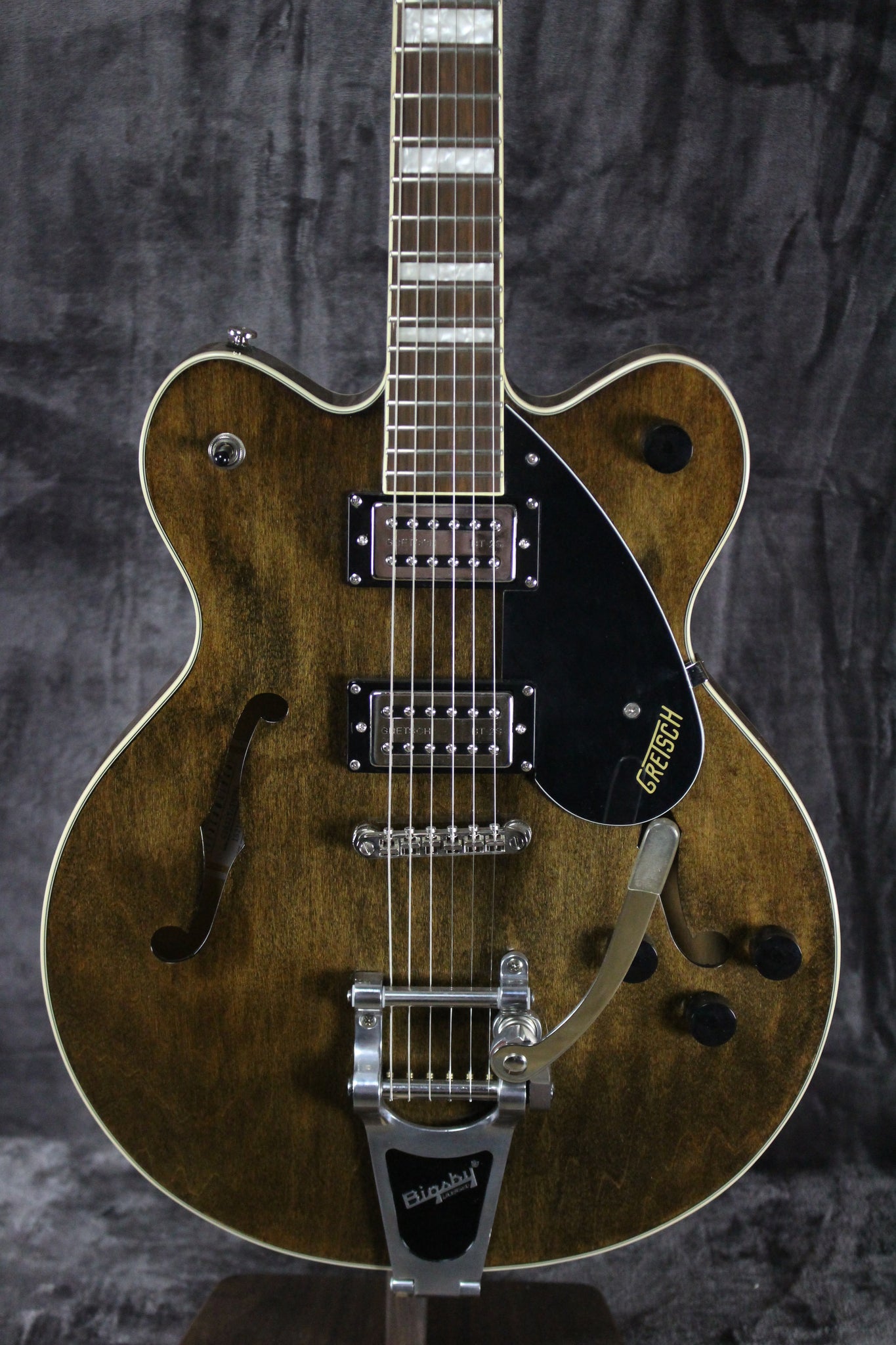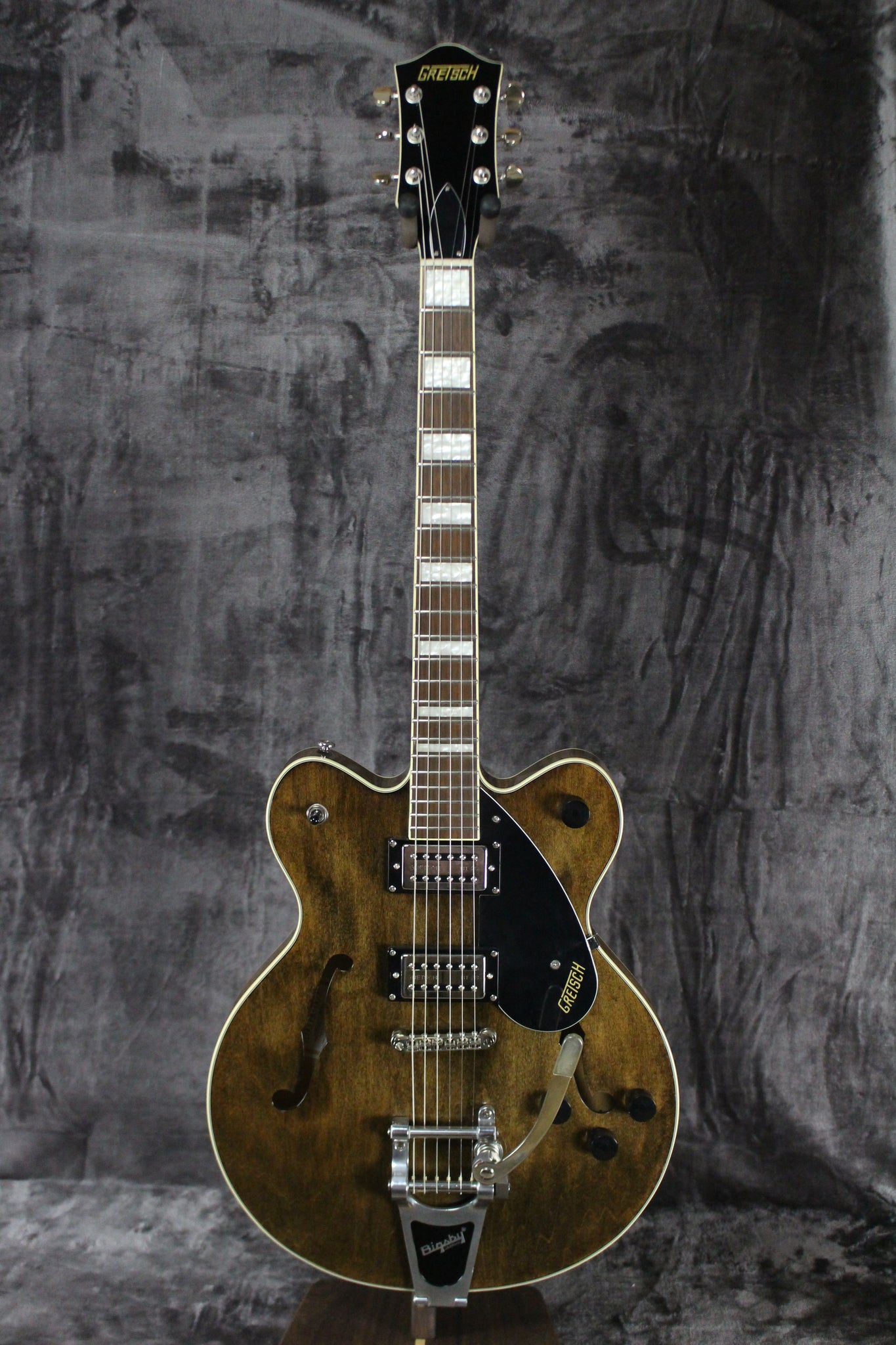 This 2021 Gretsch G2622T delivers an incredibly snappy, open tone thanks to its 5-ply arched maple body. Broad’Tron pickups balance out the Streamliner’s tone beautifully. A weight-relieved spruce center block imbues the Streamliner with true hollow body tone while also keeping feedback under control — even in high-gain situations. Topped off with a Bigsby tailpiece for gentle vibrato effects, the Gretsch G2622T Streamliner delivers classic big-body sounds